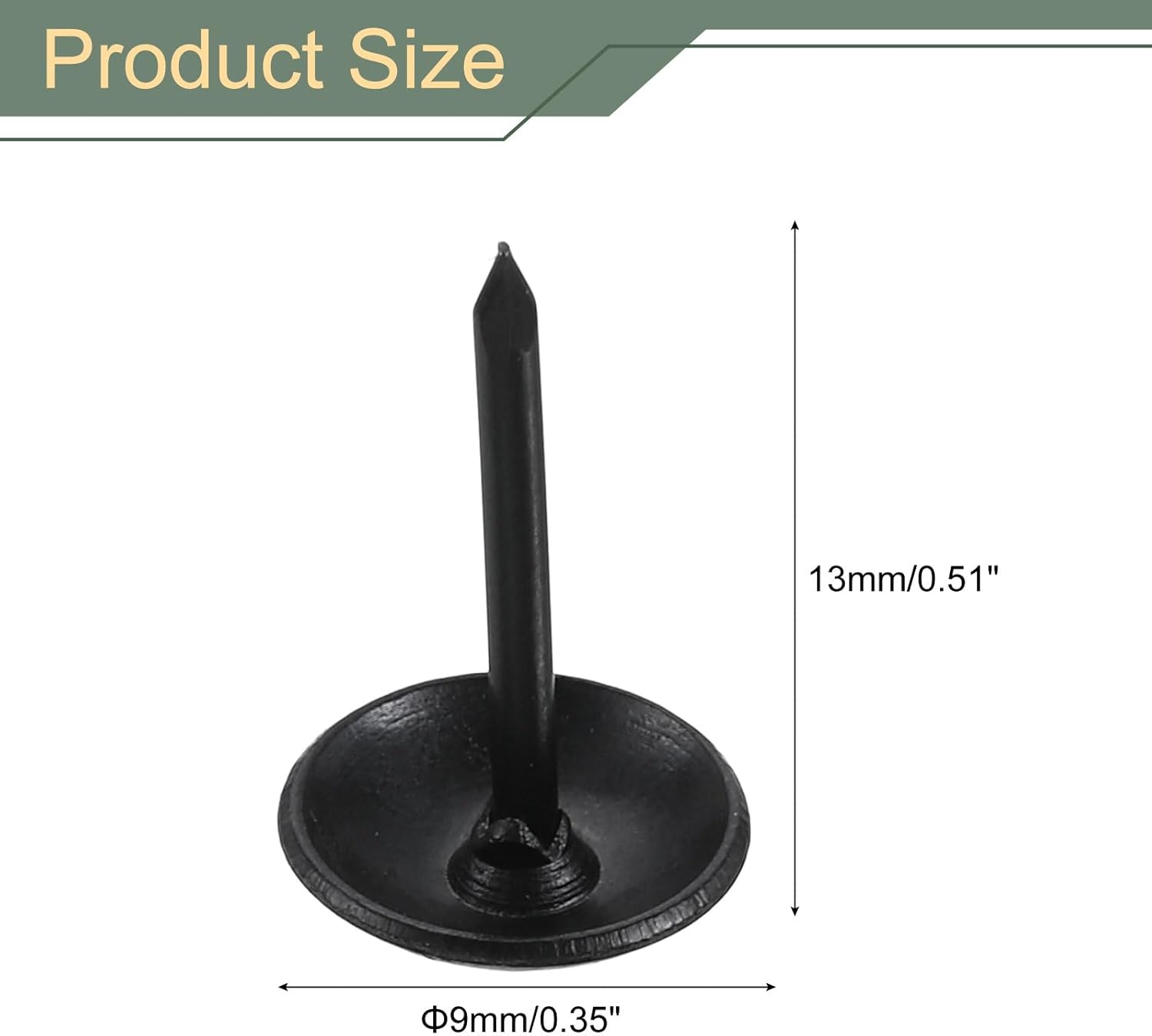 uxcell 50 Pcs Upholstery Tacks, 9 x 13mm Round Head Upholstery Nails Pins Vintage Decorative Furniture Tacks for Chairs Sofas Beds DIY Project, Black