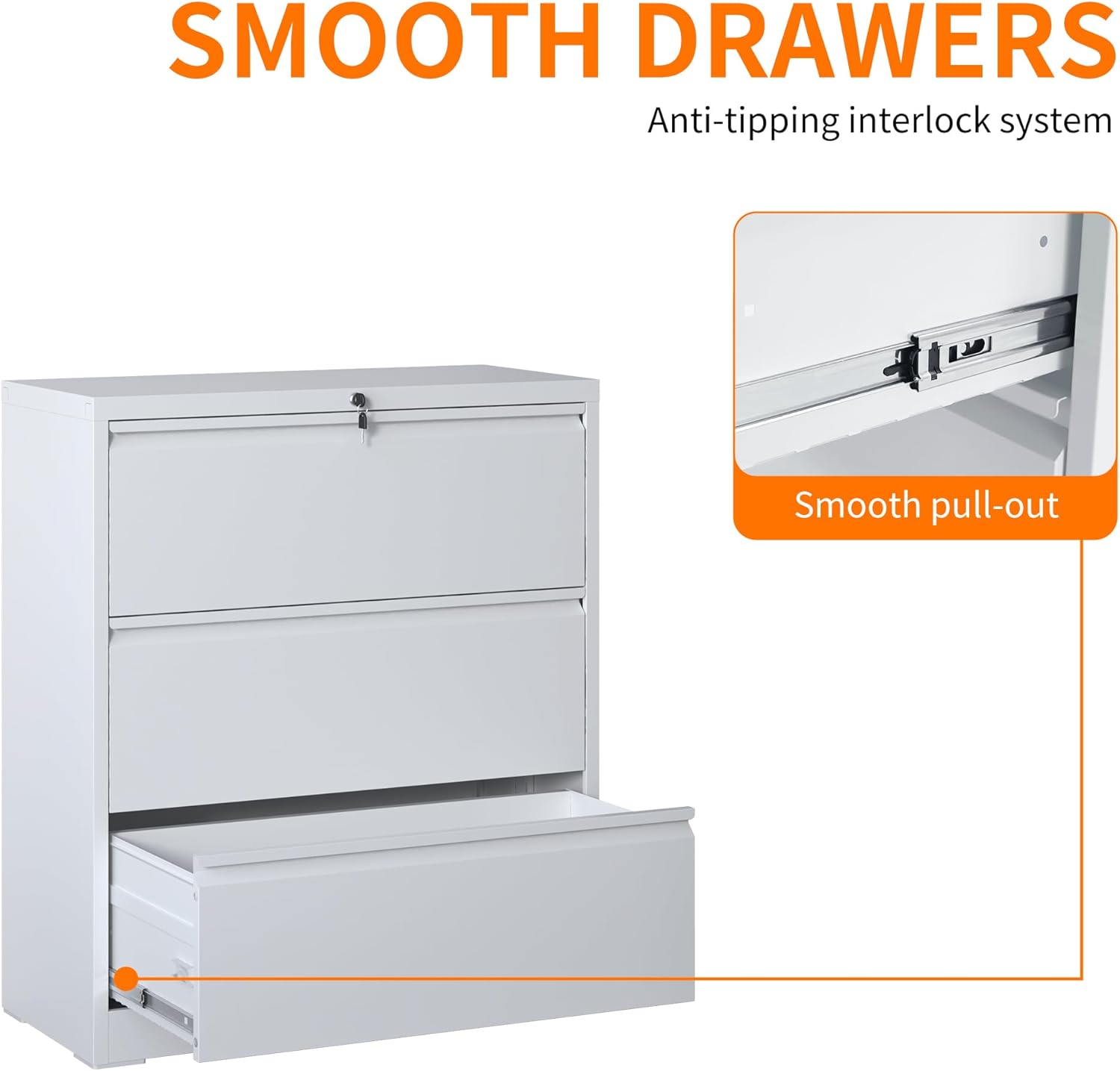 - 【Solid & Durable】Crafted from whole-in-one reinforced high-strength cold-rolled steel, this locking lateral file cabinet ensures remarkable sturdiness and longevity. Each drawer can bear a maximum load of up to 110lbs, showcasing its robust construction. The combination of a strong structure and a powder coating surface process makes this wide cabinet highly resistant to rust, scratches, and ensures easy cleaning, maintaining its pristine appearance over time.