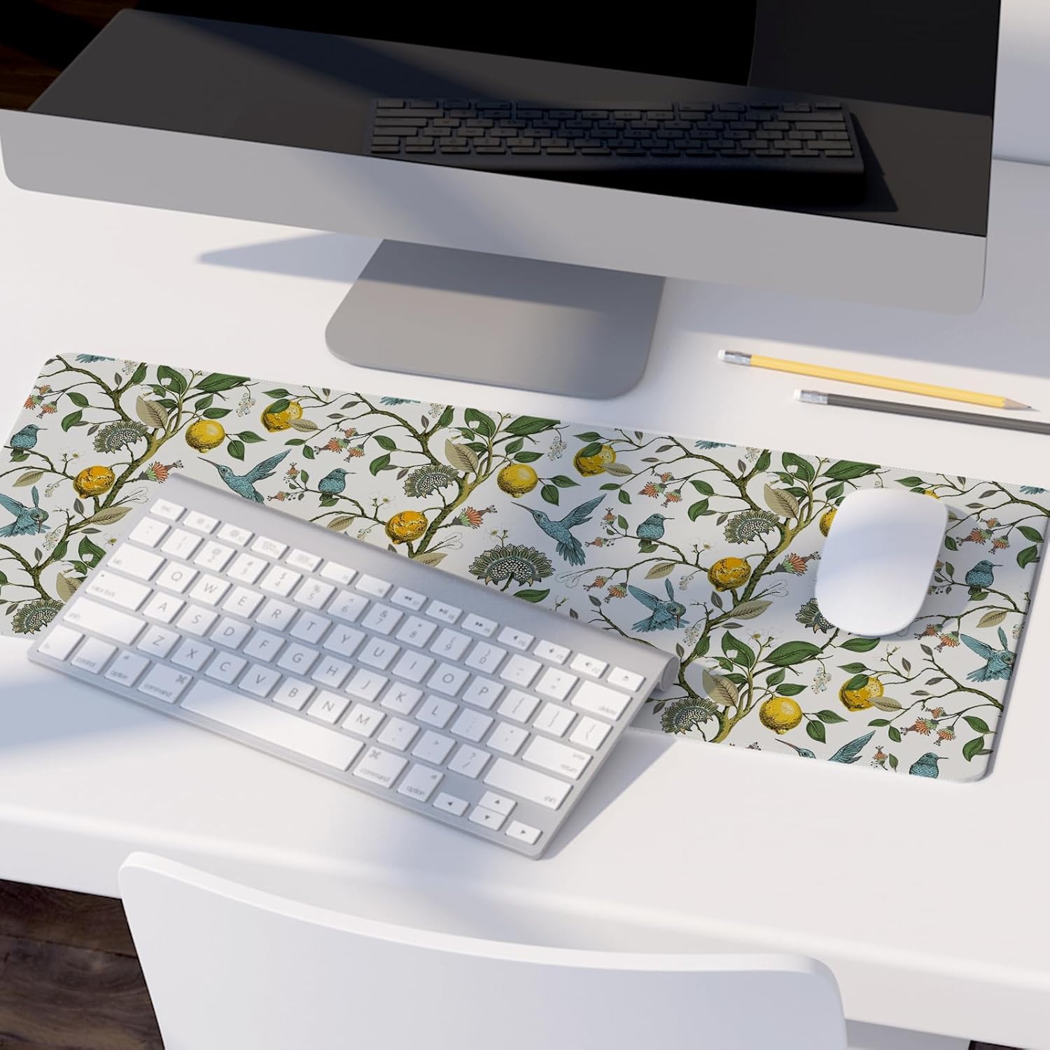 Lemon Mouse Pad,Green and Yellow Italian Lemon Desk Mat,Vintage Cottagecore Floral Desk Mat,Girly Summer Mouse Pads for Dorm Home Office Desktop Decor,31.5x11.8 Inch