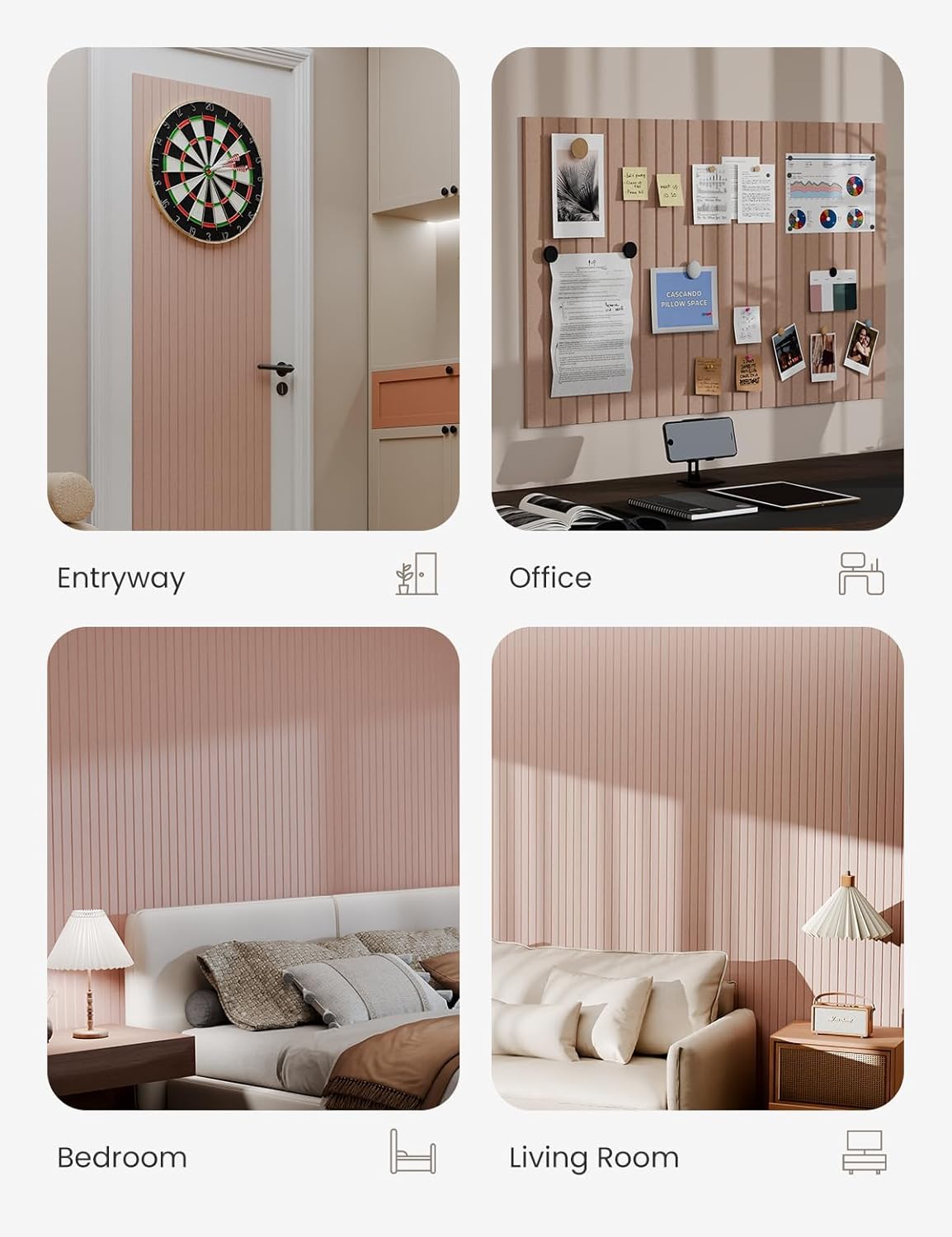 Bumusty Large Cork Board Alternative-36 x24 Felt Bulletin Board Tiles, with 30 Pushpins, 40 Adhesive Tabs, 6-Pack Slat Wall Paneling, Cork Boards for Office Push Pin Board Felt Board-Coral