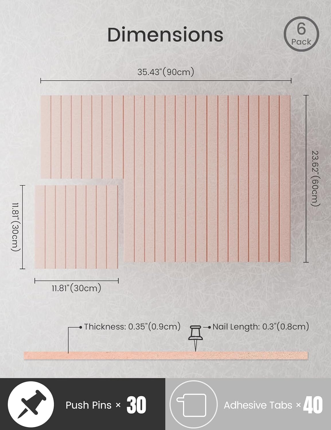 - 【Felt Bulletin Board – 6 Tiles Included】 Includes 6 felt cork boards (each 11.8" x 11.8") with 30 Pushpins that can be freely arranged into a large display board. Perfect for showcasing your schedules, ideas, and creations in home or office settings.