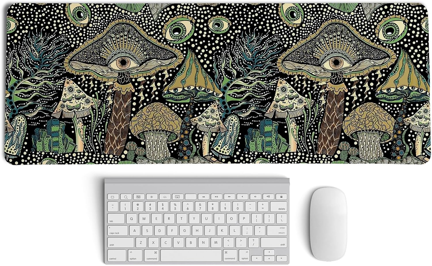 Boho Mushroom Floral Mouse Pad,Dark Green Cottagecore Mushrooms Desk Mat,XL Large Magic Vintage Boho Desk Mat,Summer Style Mouse Pads,for Dorm Home Office Desktop Decor Art,31.5x11.8 Inch