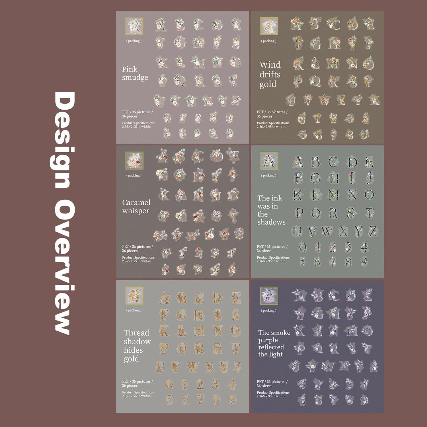 - Floral Letter & Number Designs: 6 styles, each with 36 unique patterns (216 pieces total), featuring elegant floral alphabets and numbers sized within 2.36 x 2.95 inches to add charm and creativity to your scrapbook, journal and, other crafts