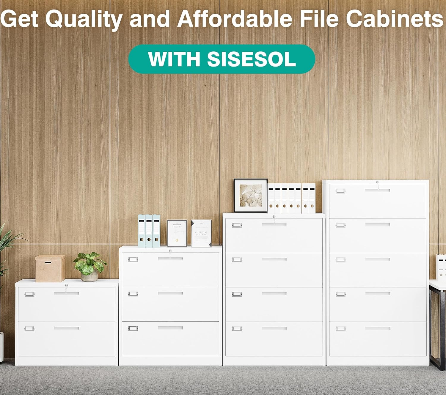 SISESOL 4 Drawer Lateral File Cabinet with Lock,White Lateral Filing Cabinet,Horizontal Metal Filing Cabinets,Locked Wide Four Drawer File Cabinets for Office Home,Fit A4/F4/Letter/Legal File