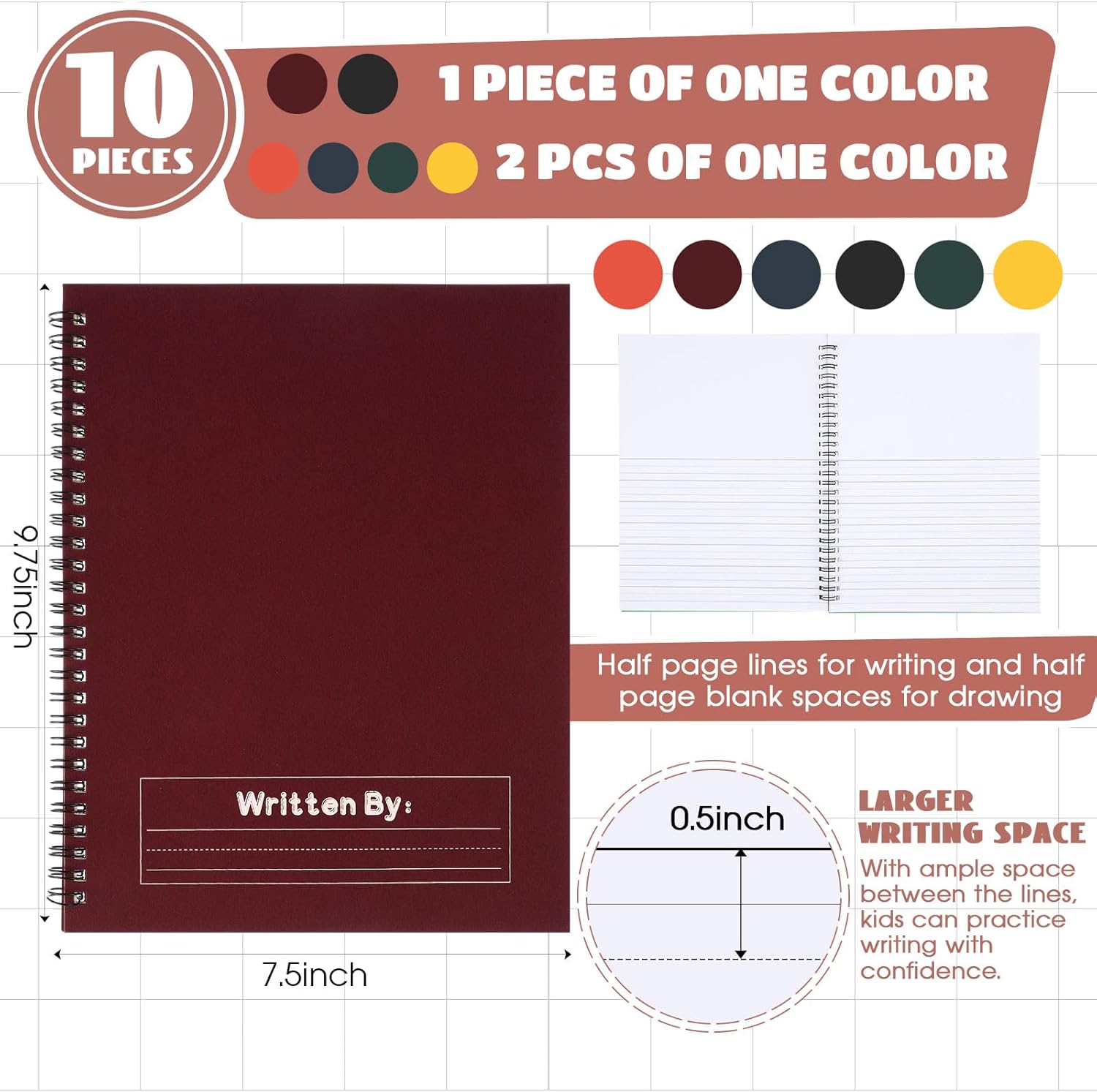 - Quality Materials: these primary journals are made of white card and paper, ensuring durability and a professional appearance; The covers are available in five vibrant colors, including red, orange, yellow, green, and blue and adding a festive touch to your writing experience
