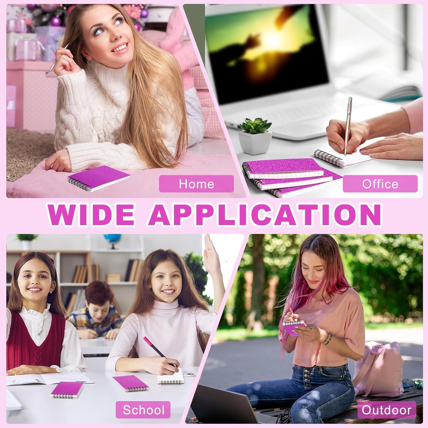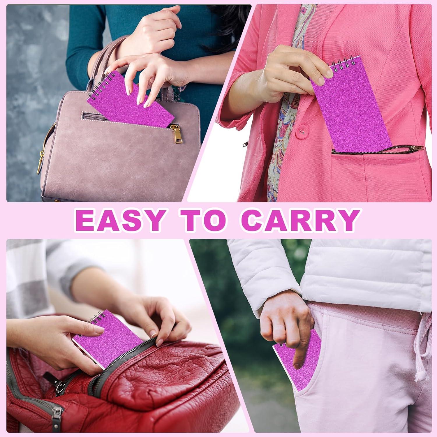 Tenceur 6 Pcs Pocket Notebook Bulk Small 3x5 Inch Spiral Notepads Mini Top Bound Notebook with Lined 120 Pages Ruled Memo Pads for Office College Nurse Essentials Back to School Gift (Glitter Hot Pink)