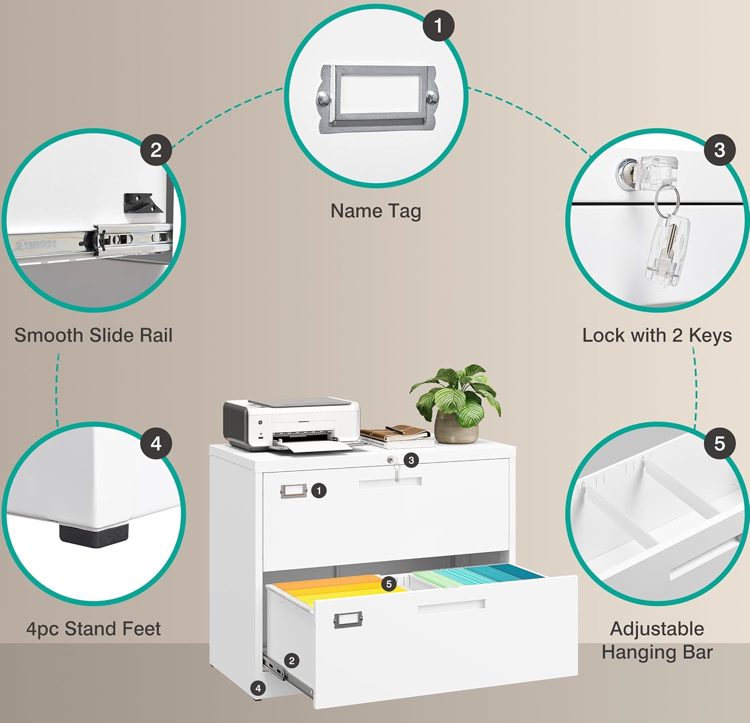 - 【Anti-tilt Mechanism】: All drawer interlocking mechanisms are designed to prevent tilting and ensure that only one drawer can be opened at a time; the file cabinet has 1 lock and 2 foldable keys to effectively protect your private documents and valuables. It is suitable for various scenes such as offices,home