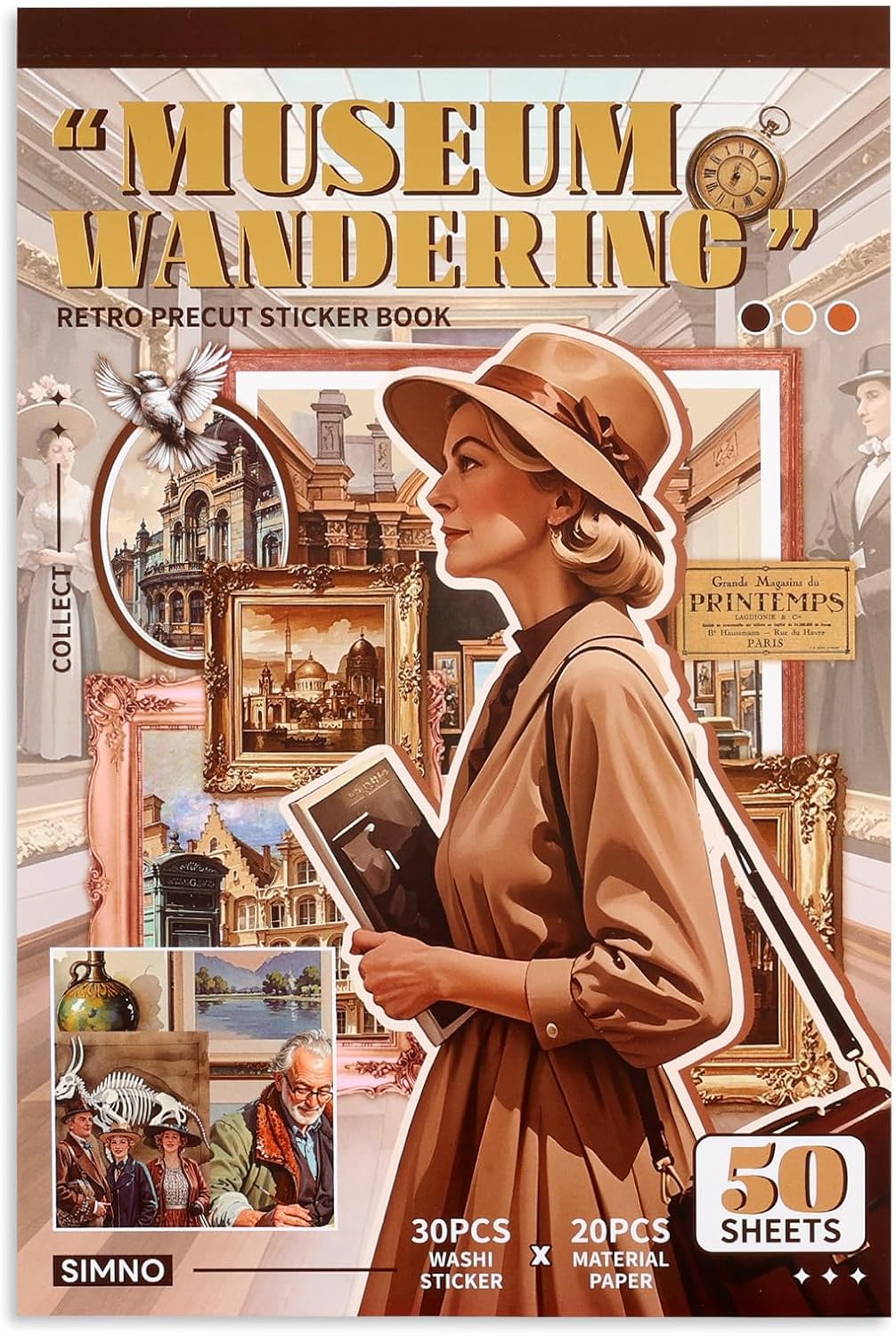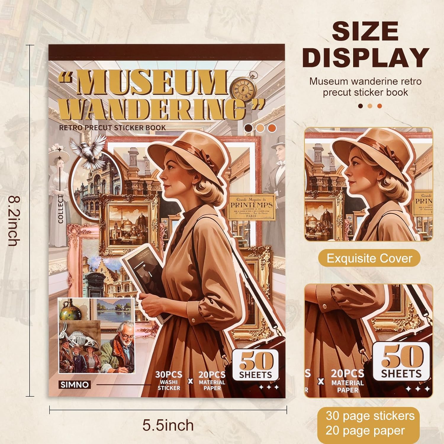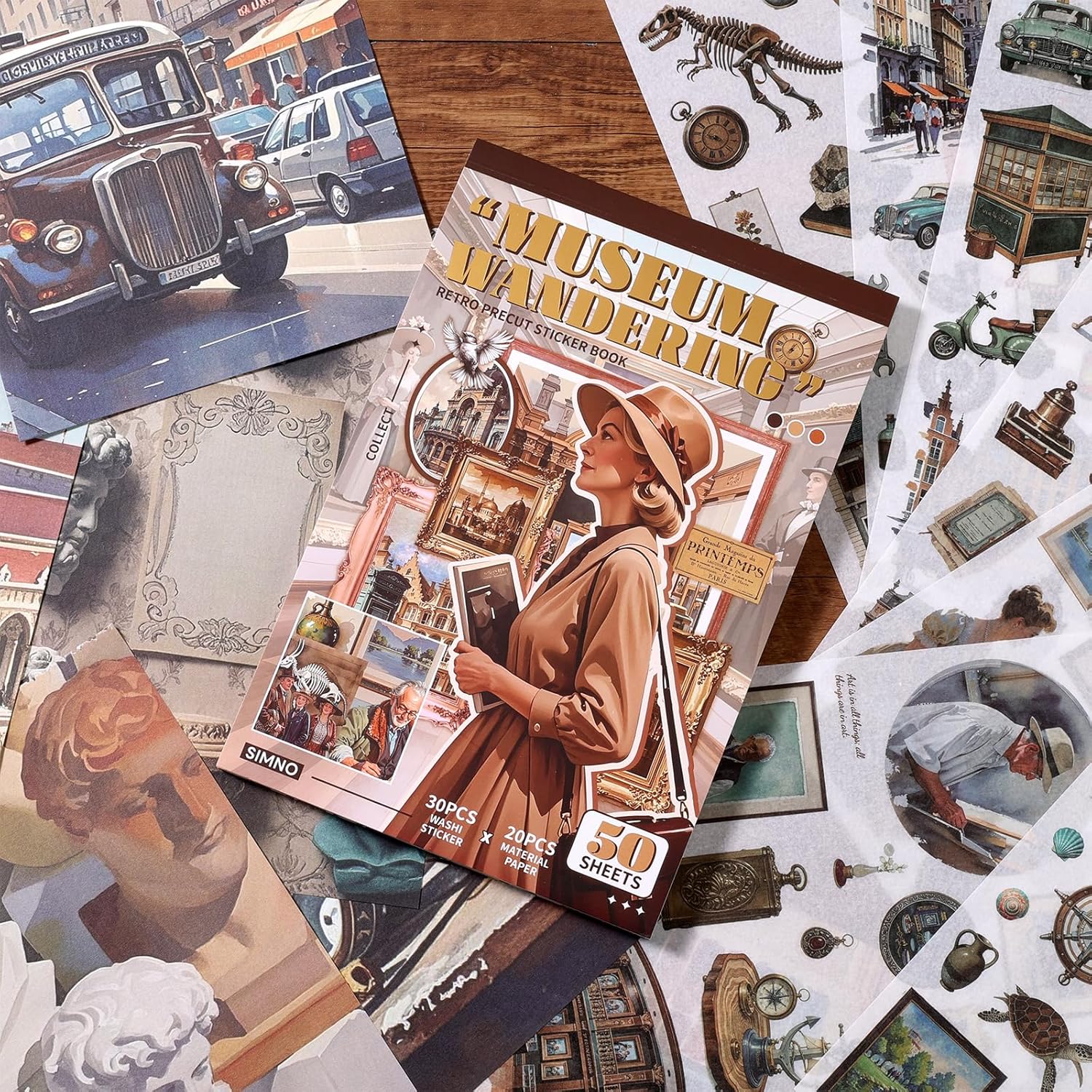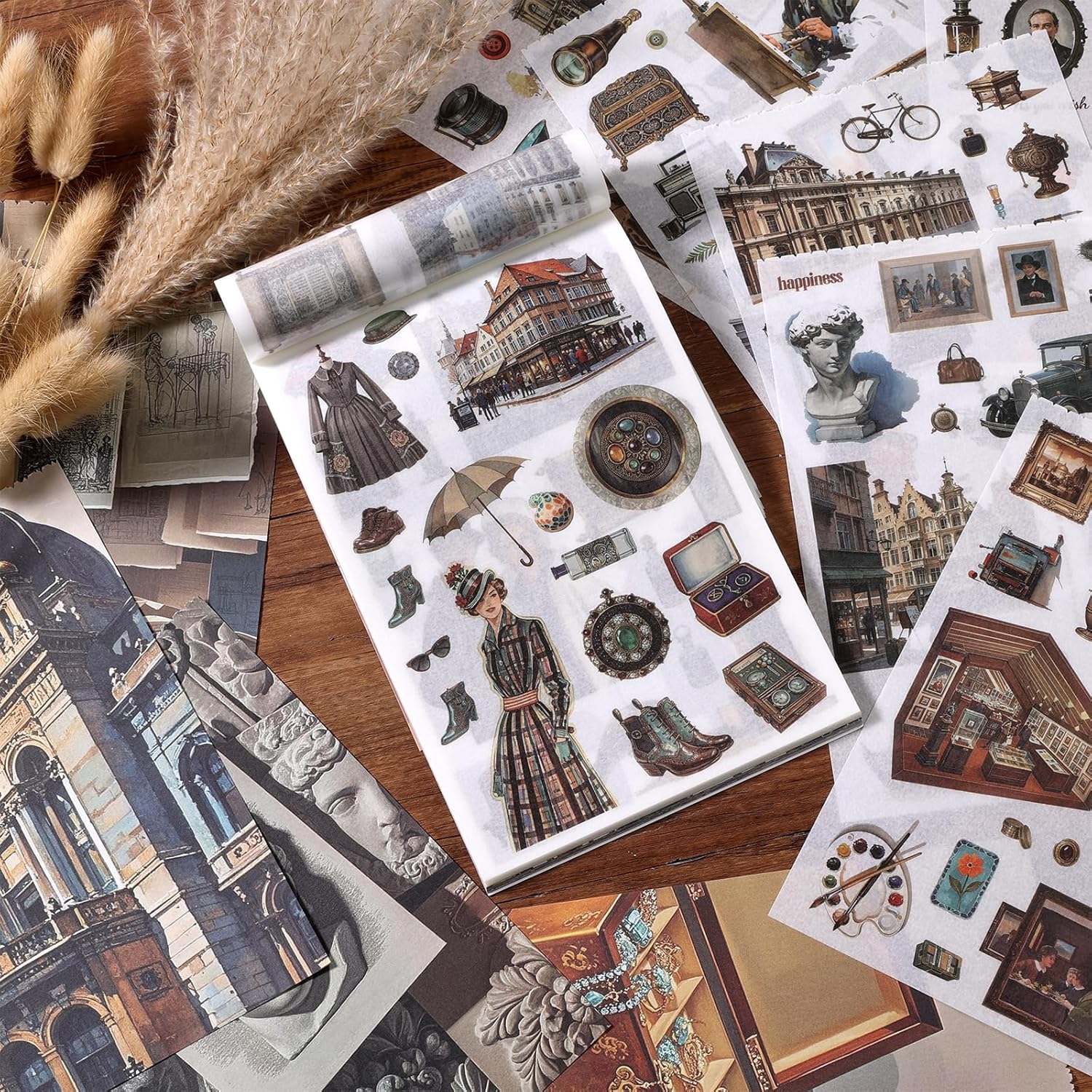 Scrapbooking Stickers 400 Pre-Cut Washi Stickers & 20 Scrapbook Papers Museum Vintage Sticker Books for journaling Scrapbooking Supplies