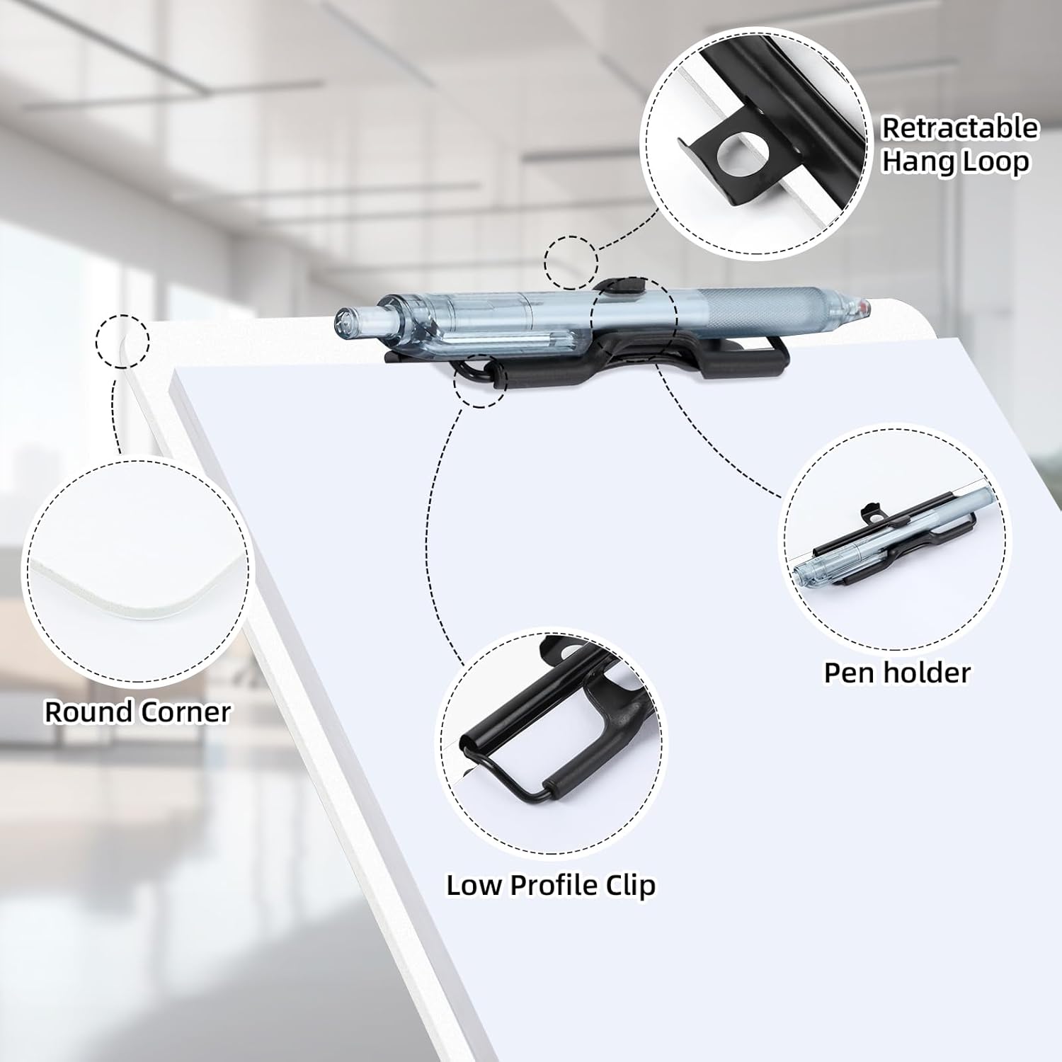 - Retractable Hanging Ring: The hanging clipboard has a retractable hanging ring on the top for easy access, you can hang it up to display the contents of your clipboard or hang it on the wall when not in use to save storage space. The low profile clip is ideal for stacked storage.