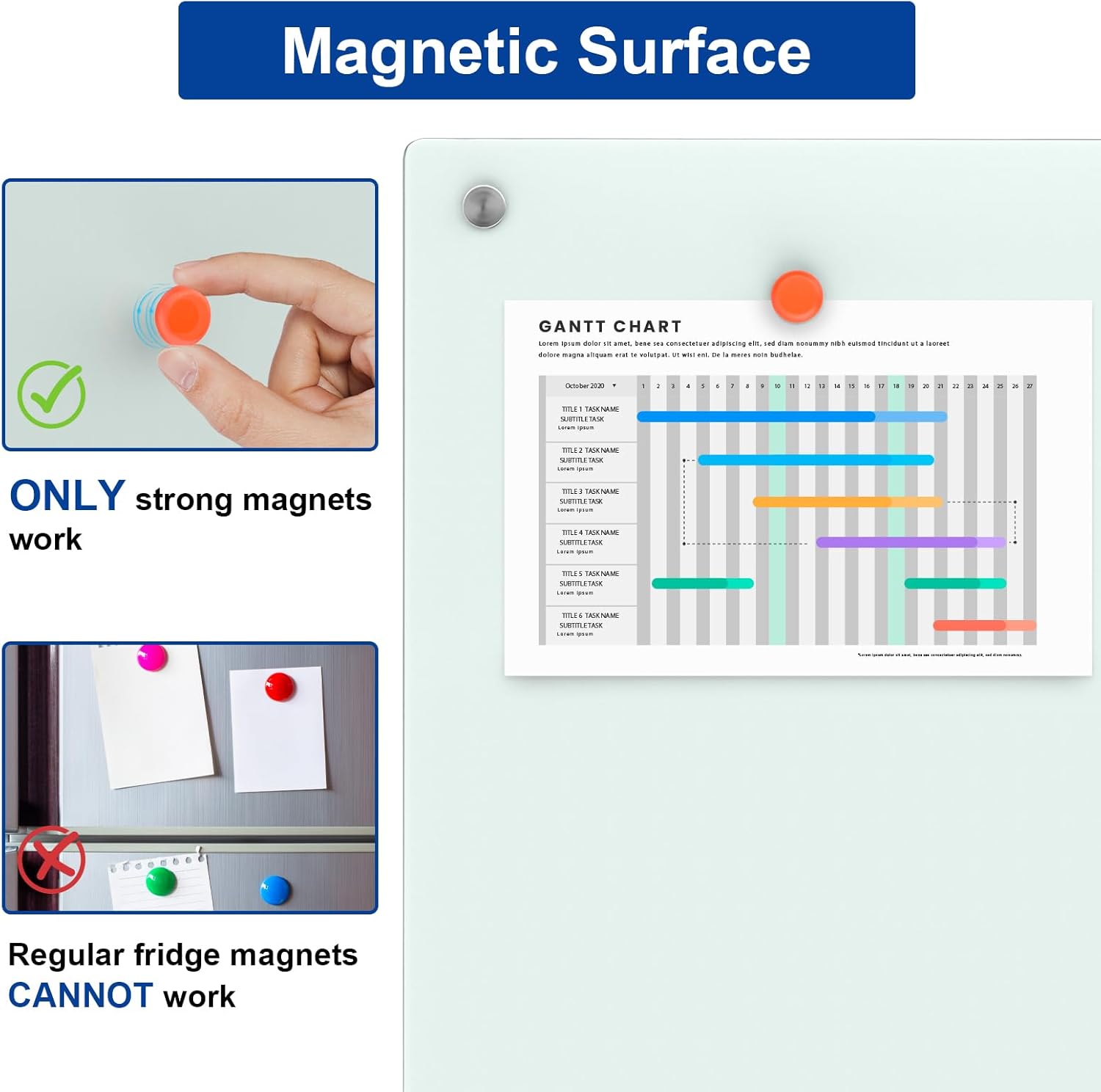 - **Magnetic Surface**: Unlike ordinary boards, this glass whiteboard supports magnets, allowing you to easily attach notes, reminders, or photos.