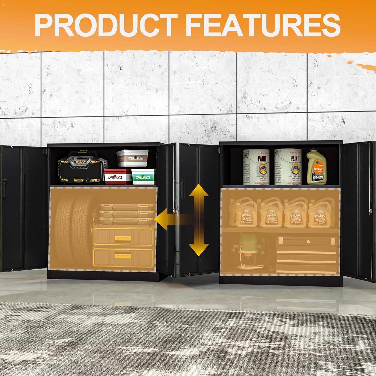 - Includes lock and two keys: The metal cabinet has a lock and two keys that come pre-installed in each of our garage cabinet, with doors and shelves. You can enjoy a second key that can be used by a co-owner or as a spare key in case of loss.