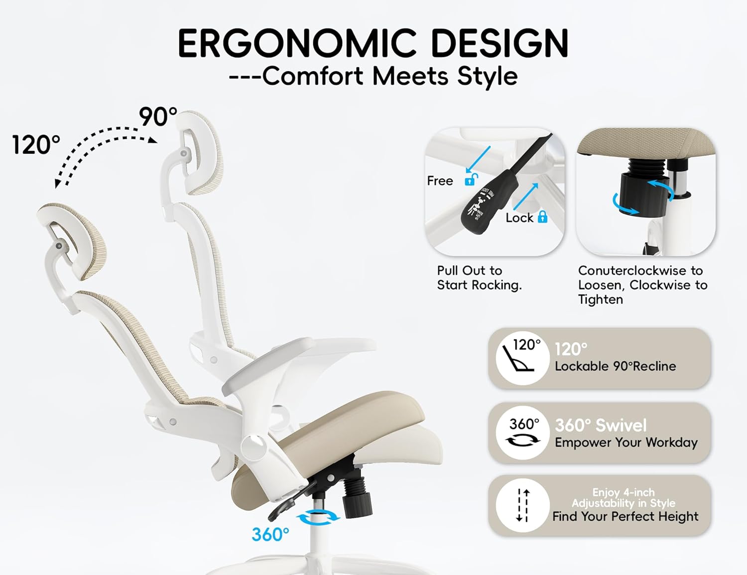 TRALT Office Chair - Ergonomic Office Chair with Back Support, Computer Chair - Home Office Desk Chairs, 330lbs Wide Seat Big and Tall Office Chairs with Headrest, Comfy Desk Chairs (Beige)