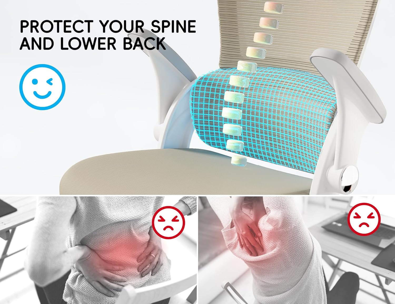 - Ergonomic Lumbar Support for All-Day Comfortļ¼Say goodbye to back pain! Our office chair features an independent lumbar support that perfectly contours to your spine, providing targeted relief and reducing fatigue during long work hours. Whether youāre gaming, working, or binge-watching, your lower back stays supportedāno more slouching or discomfort.