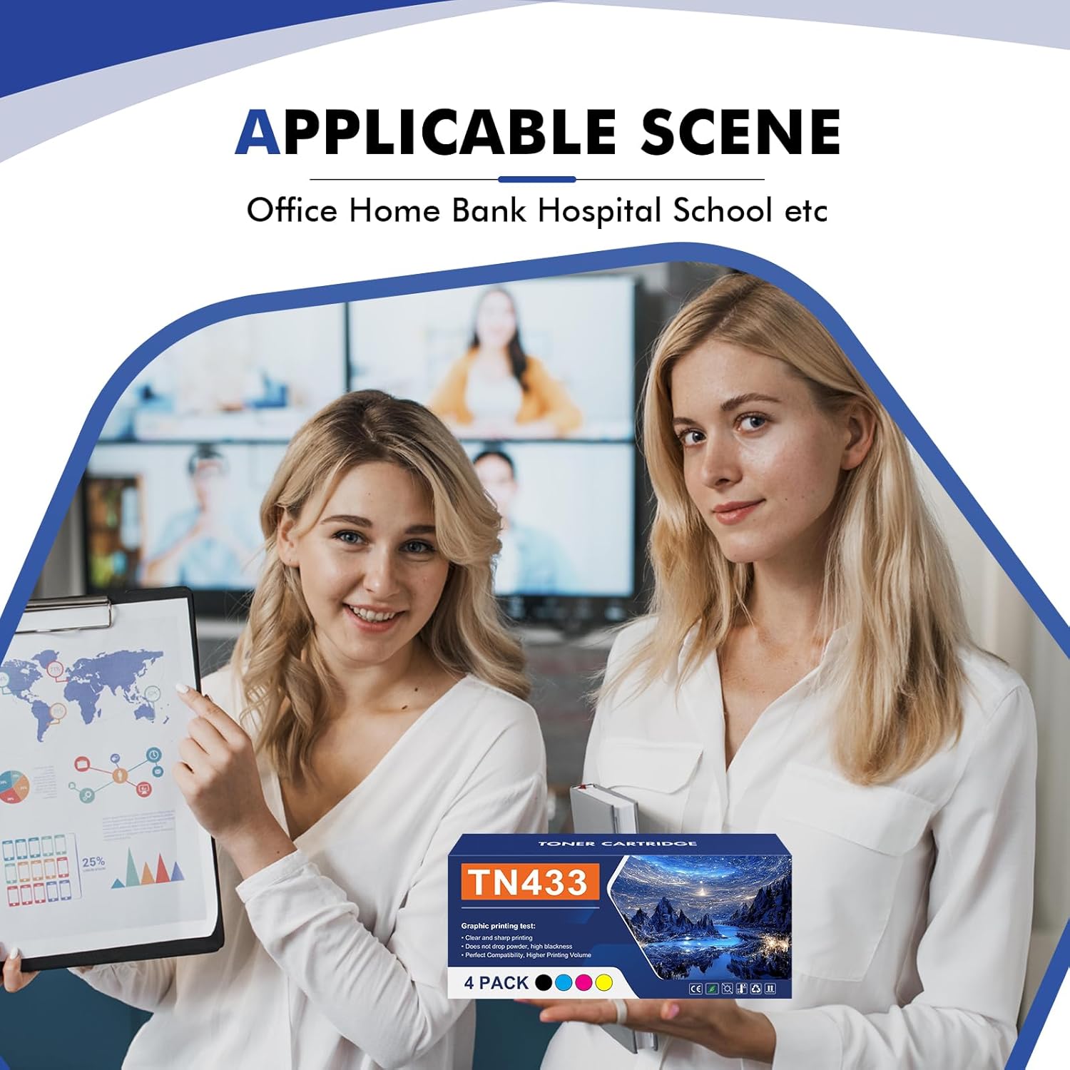 - Excellent Performance: TN433 TN 433 TN-433 toner Cartridge 4 Pack deliver superior printing results with vivid colors and clear prints