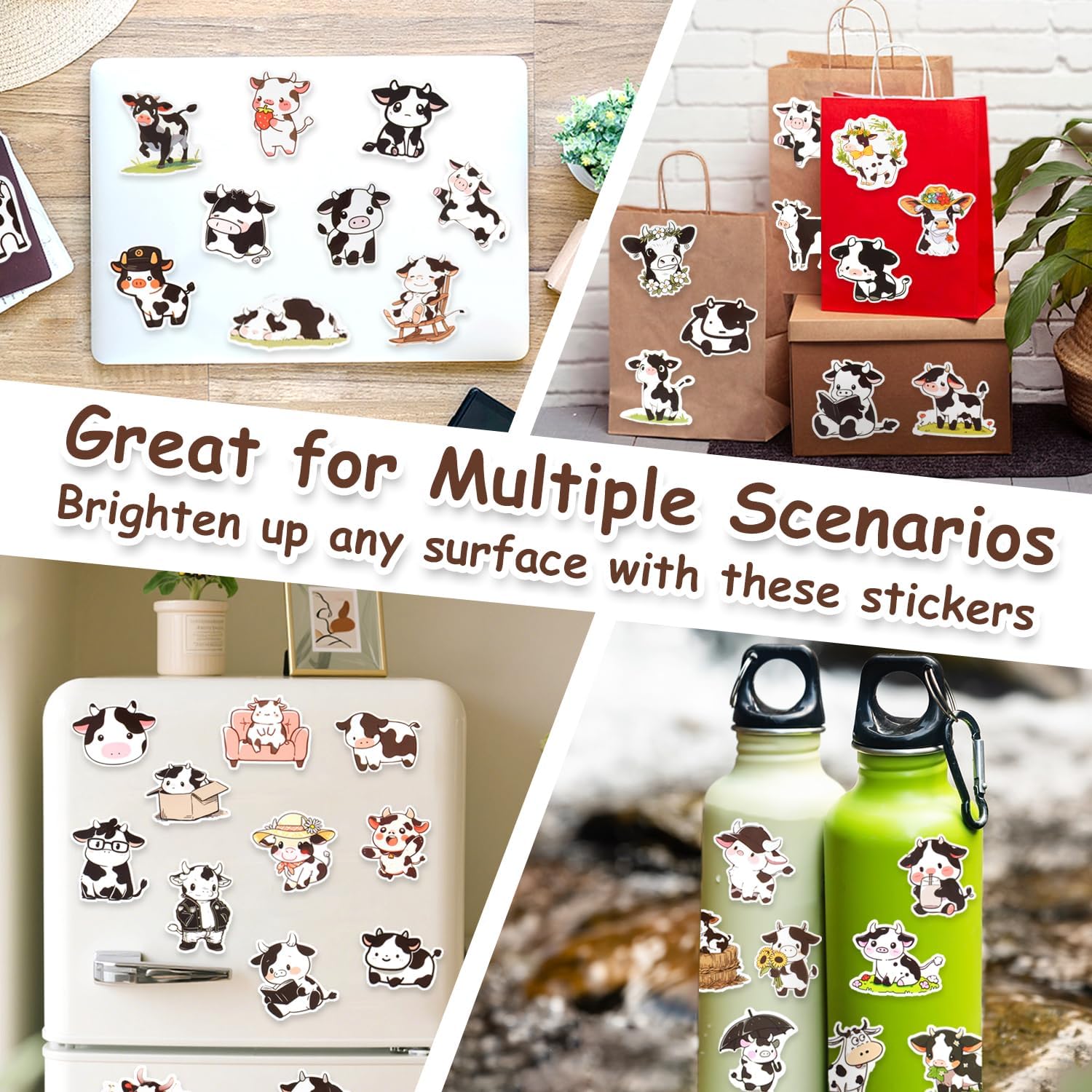 Aowplc 50 PCS Cow Stickers - Cute Cow Stuff & Gifts - Waterproof Vinyl Decals for Water Bottles, Laptop