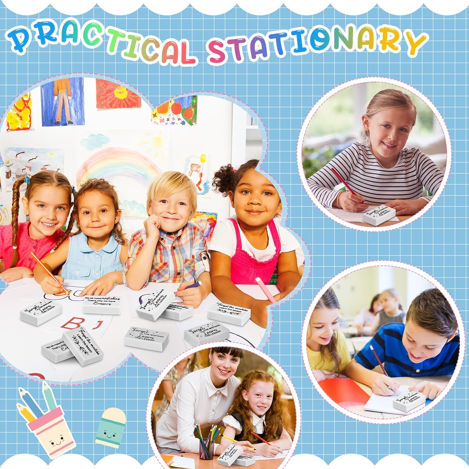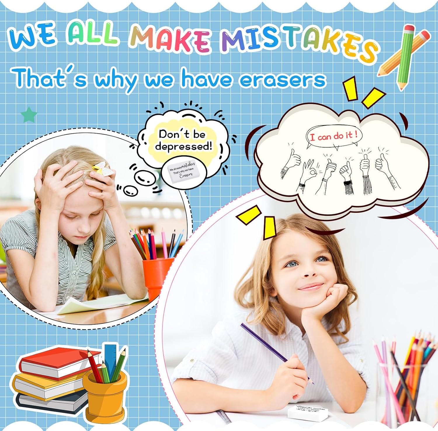- Designed to Inspire: more than just erasers, they carry inspirational words and patterns to retain the positive vibe, including [Forget the mistake; Learn the lesson], [Mistakes are proof that you're trying], [We all make mistakes; That's why we have erasers]; These fun and motivational accessories add a little bit of brightness and a splash of color to your workspace or study area
