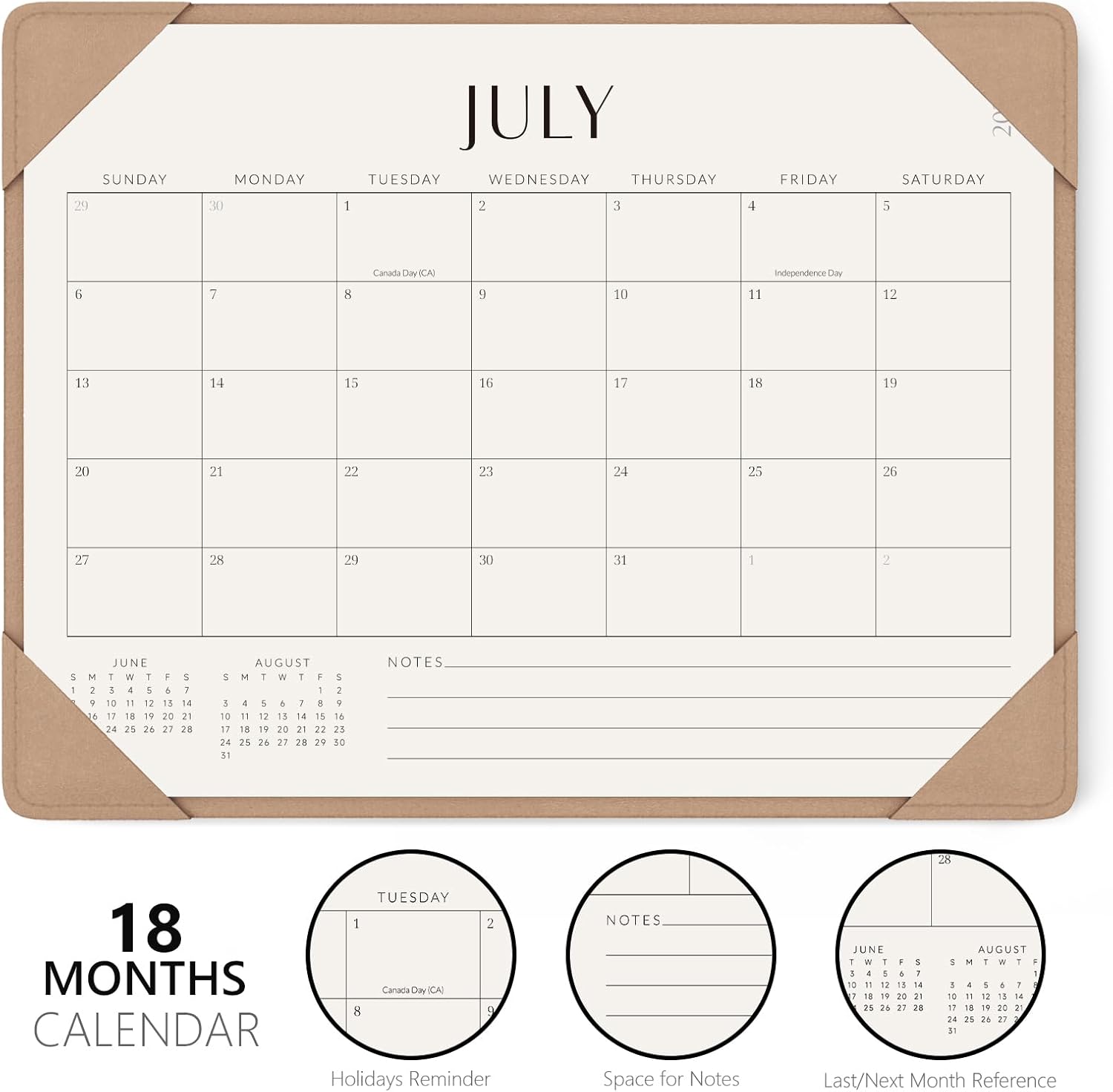 - DESK PROTECTING PAD & PREMIUM PAPER: This desk calendar includes a protective mat to shield your desktop from stains and scratches while keeping your calendar clean and tidy. Printed on thick, premium paper to avoid ink through, this desk calendar july 2025-2026 provides a smooth writing surface