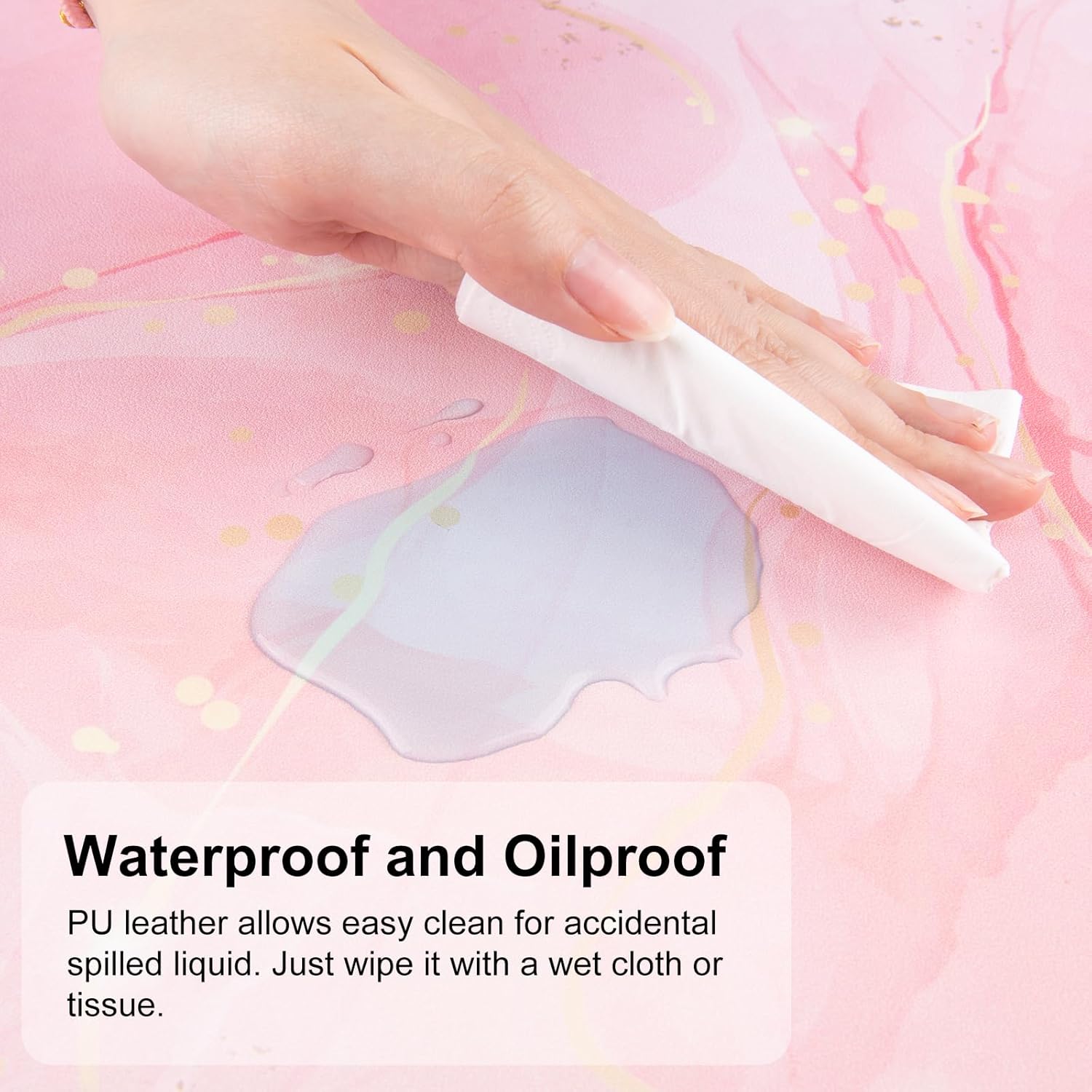 QIYI Large Mouse Pad, Extended Desk Mat for Desktop, PU Leather Waterproof Gaming Mousepad, Computer Desk Accessories Protector Writing Pads for School Office Home 31.5" x 15.7" - Dreamy Pink Marble