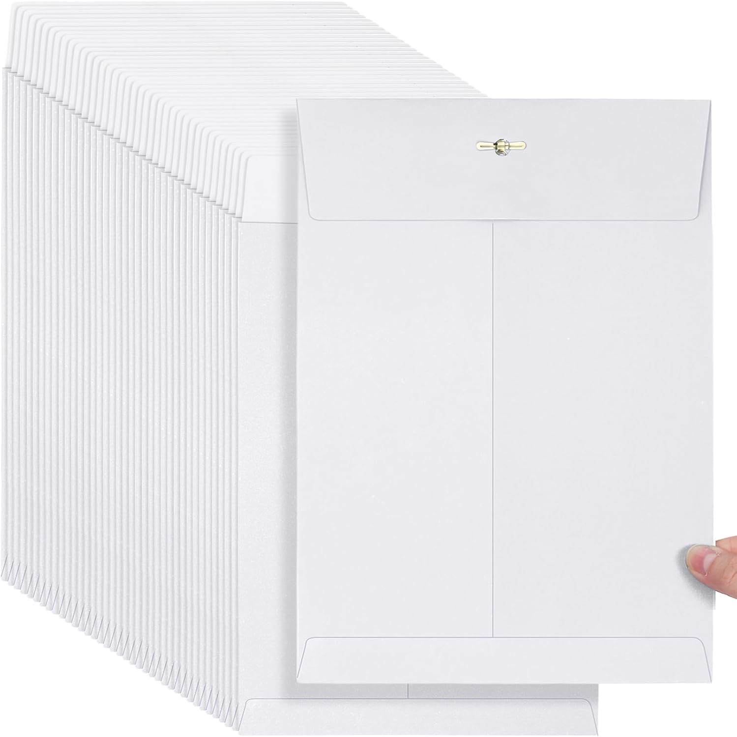 Teling 50 Pcs Manilla Envelopes Clasp Kraft Catalog with Closure for Storing Mailing 28 lb Kraft Envelope Paper for Office Document School Business Home(White,9 * 12)