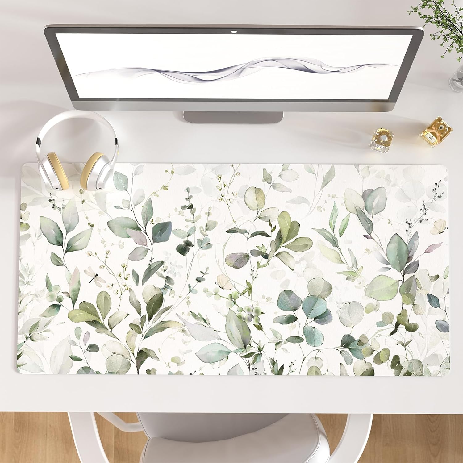 QIYI Large Mouse Pad, Extended Desk Mat for Desktop, PU Leather Waterproof Gaming Mousepad, Computer Desk Accessories Protector Writing Pads for School Office Home 31.5" x 15.7" - Soft Green Foliage
