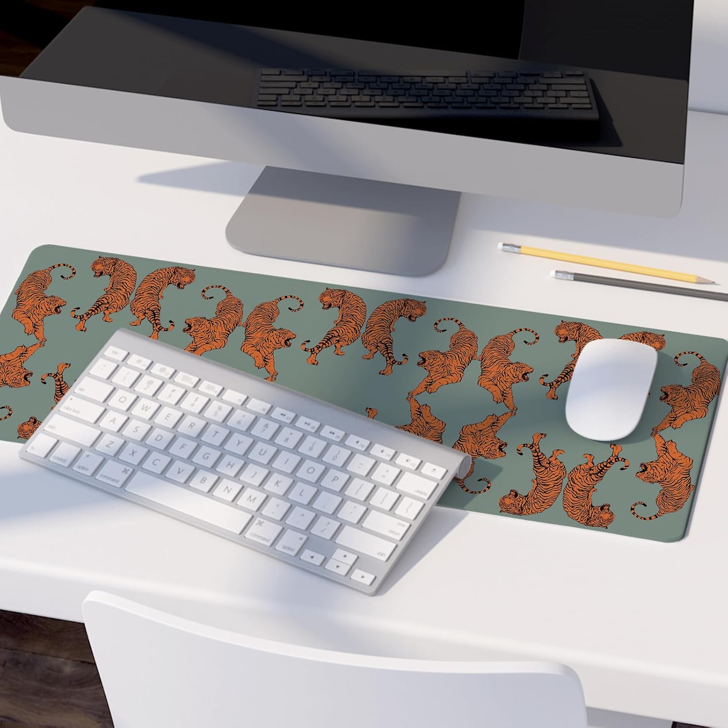 Sage Green Tiger Decor Mouse Pad,Cheetah Desk Mat,XL Large Leopard Mouse Pad,Preppy Desk Mat for Dorm Home Office Decor,31.5x11.8 Inch