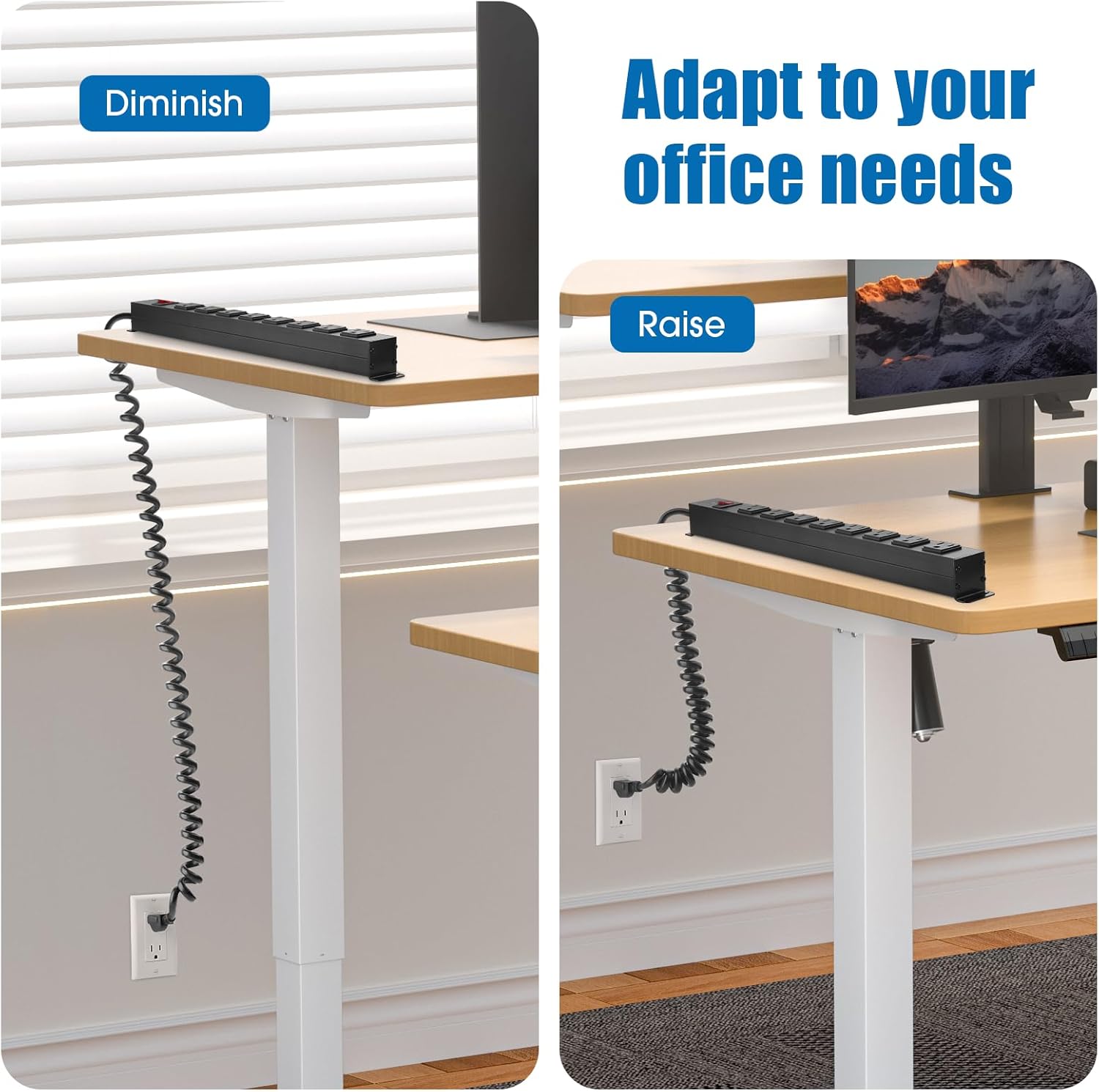 - Spring Cord Power Strip: Equipped with a 6 foot spring-loaded cord to keep things neat and organized while extending the length of the power cord, perfect for height-adjustable standing desks and your other needs.