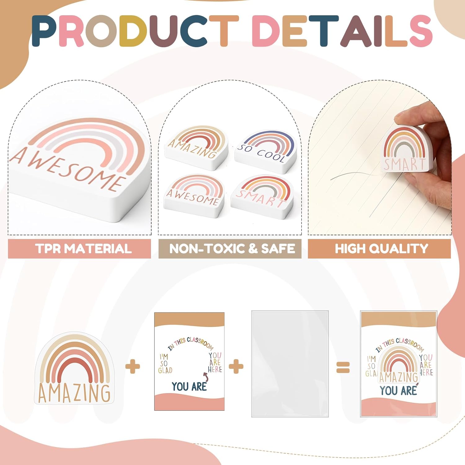 - Cute Pastel Rainbow Themed Design: each Inspirational eraser features a 3d novelty shape of inspirational quotes, adding a fun and artistic flair that will excite Inspirational students alike; The vibrant designs make these erasers not only practical but also delightful collectibles for kids