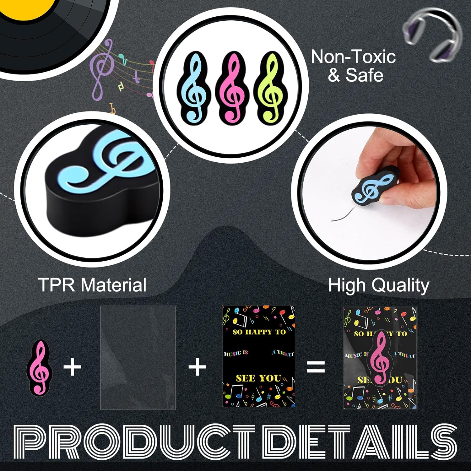 80 Sets Back to School Gifts for Students Funny Novelty Erasers Bulk Musical Note Erasers with Greeting Cards First of School Classroom Rewards from Teachers