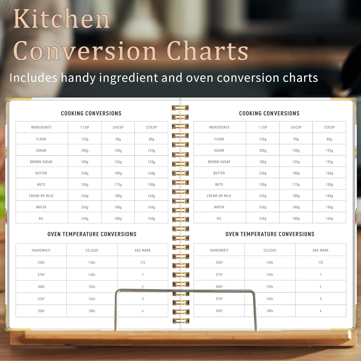 - 【Fully Functional & Novel Design】The blank recipe book features an ingredient conversion chart (cup to gram), an oven conversion chart (Fahrenheit, Celsius, gas),Reduce cooking troubles and enjoy a smoother cooking experience every time