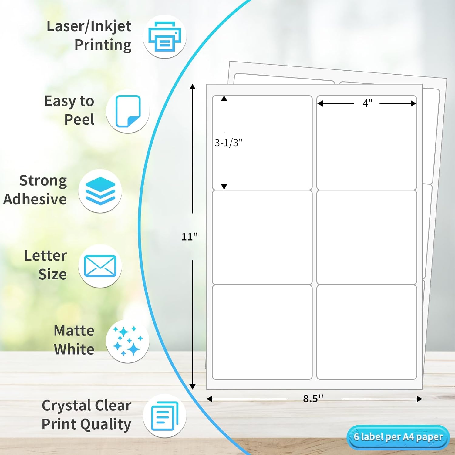 - 【Specification】Label size: 3-1/3" x 4". Sheet size: 8.5" x 11" (US Letter Size). 6 labels per sheet, total 500 sheets = 3000 labels