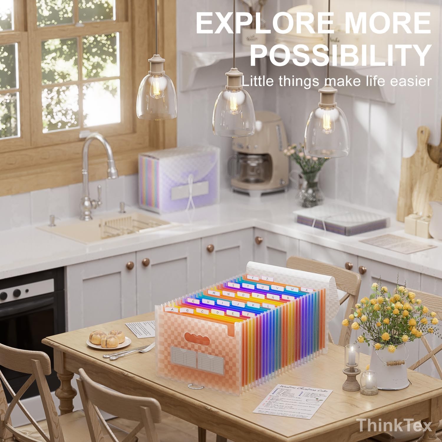 - MONTHLY BILLS ORGANIZER - ThinkTex 26 pockets accordion file organizer, top and bottom both expandable, A-Z multi-colored tabs, for letter/A4 size