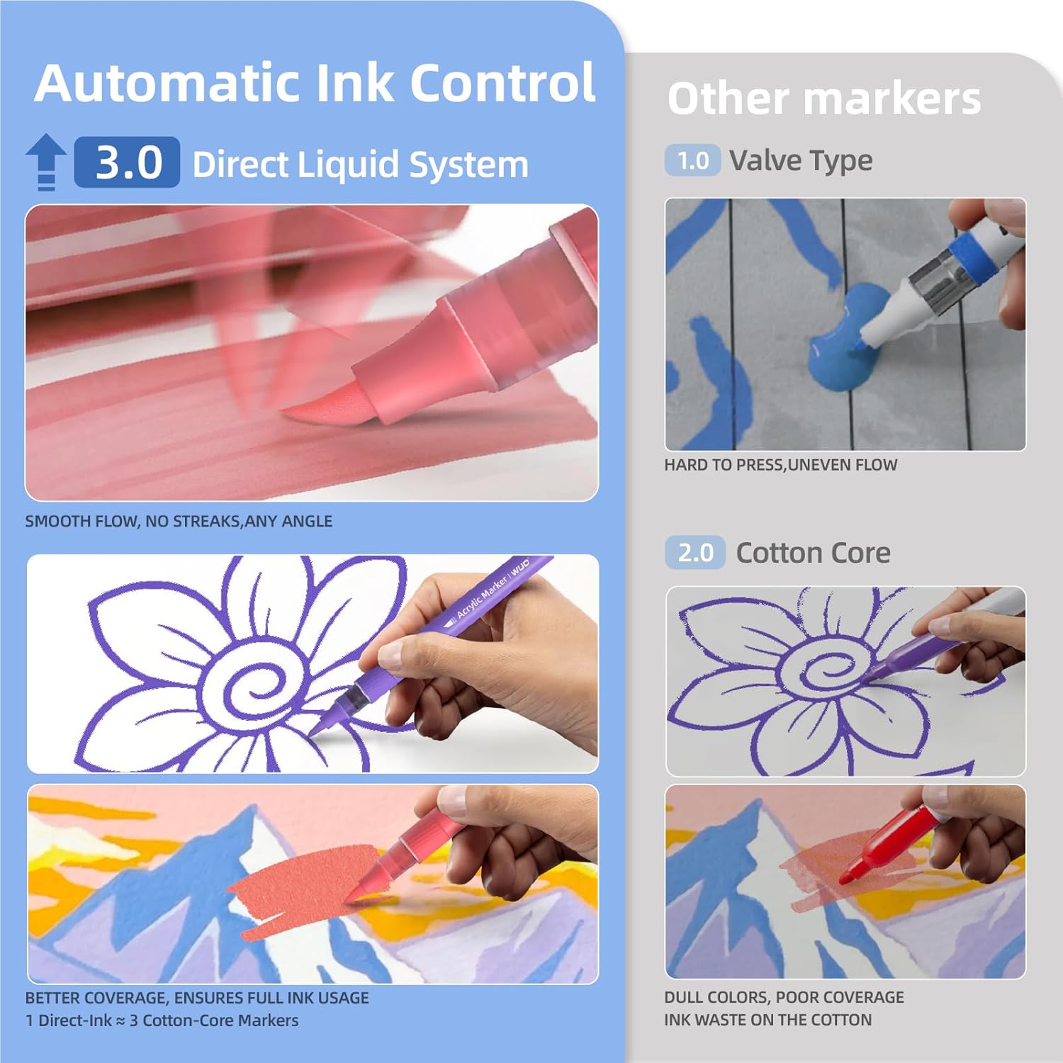 - 【Professional Performance】: Water-based ink certified ASTM D4236&EN-71;Non-Toxic,Waterproof and fade-resistant after drying; Opaque coverage even on dark materials; Suitable for artists; students and DIY crafts
