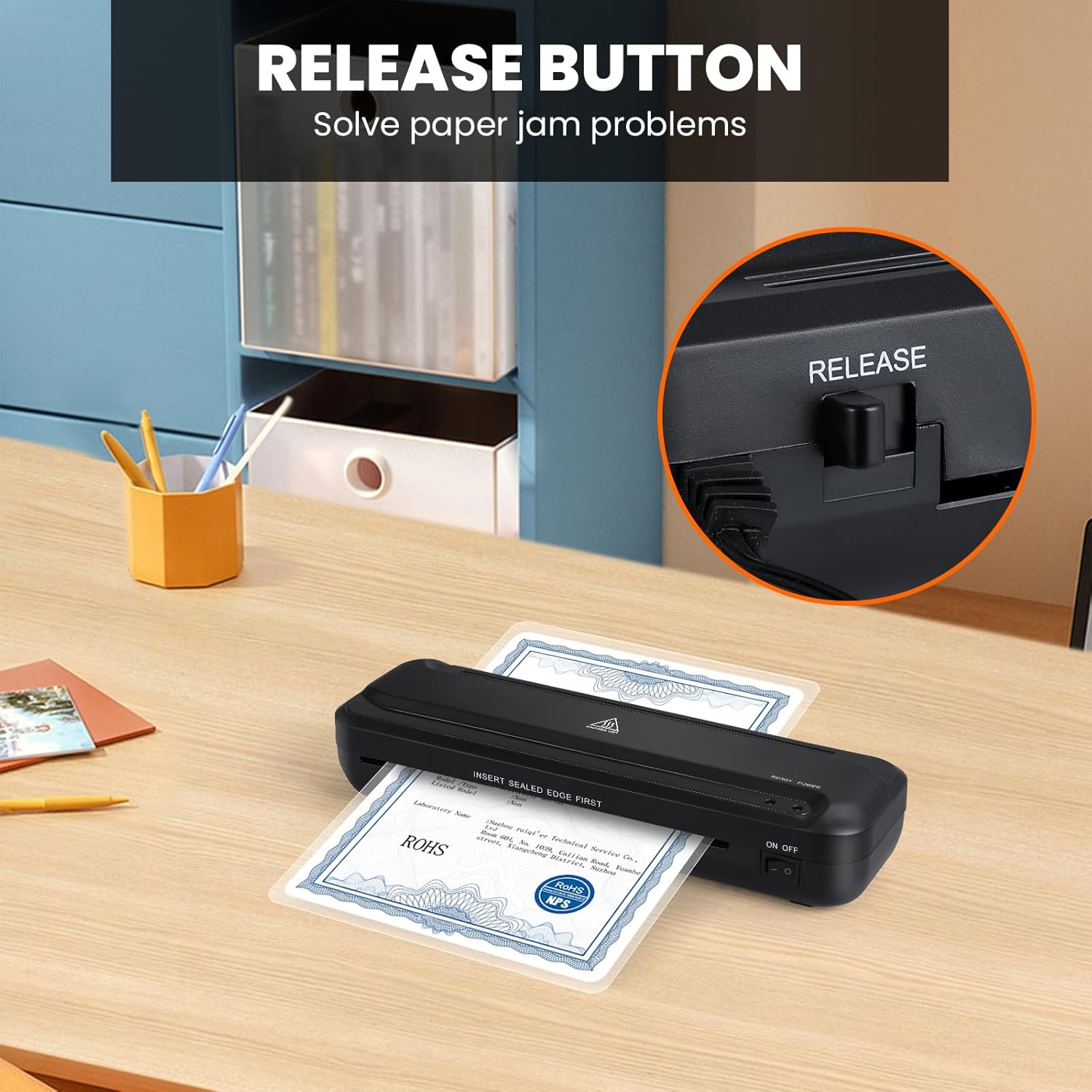 - Portable,Simple operation, compact size, and ultra-light laminator become ideal for individuals, teachers, business white-collar workers, often used to save important documents and precious photos (training materials, legal documents, posters, photos, menus, postcards, bookmarks, tags, children's artwork)
