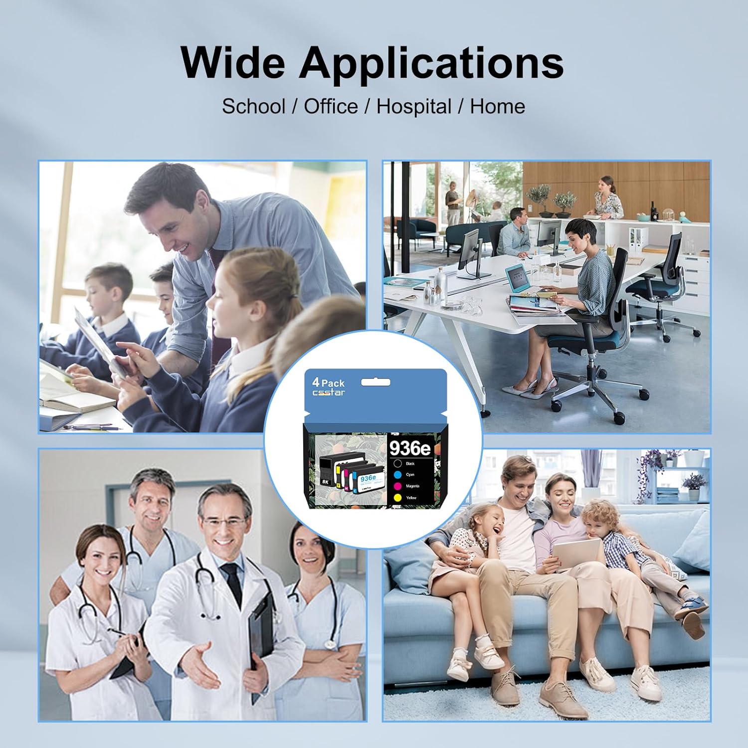 - [Package Contents]: Includes 4 Pack 936e ink cartridges. 1x 936e Black, 1x 936e Cyan, 1x 936e Magenta, 1 x 936e Yellow.