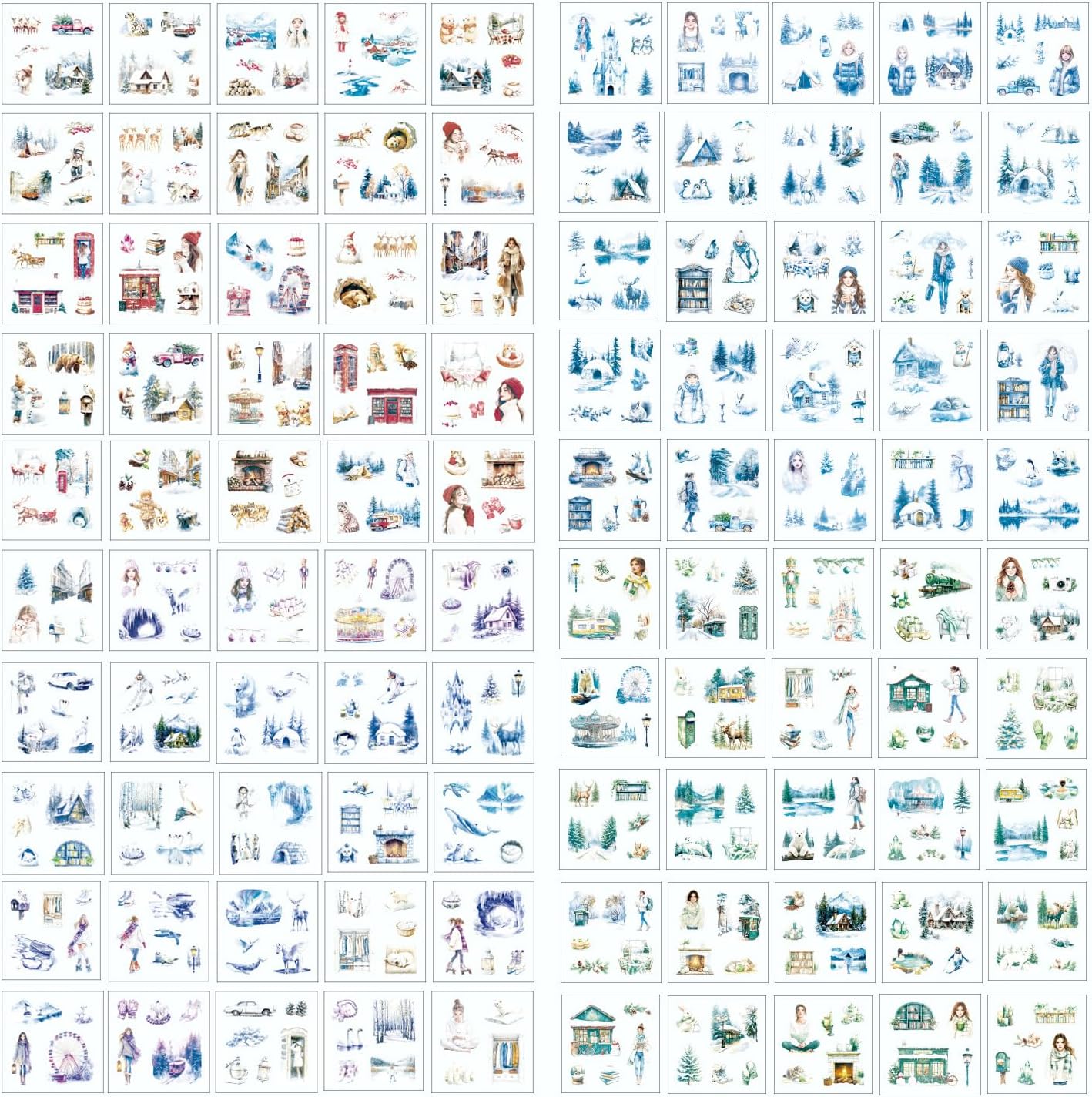 - VALUE SET - Our Vintage sweet girl stickers are made of high quality PET material. Each set has 100 sheets stickers with different patterns. They consist of a beautiful gift box that measures 185mm*185mm (7.3 inches*7.3 inches). 100 sheets, 4 grids of 25 sheets each. The size of each sheet is 75mm*75mm (3 inches*3 inches).