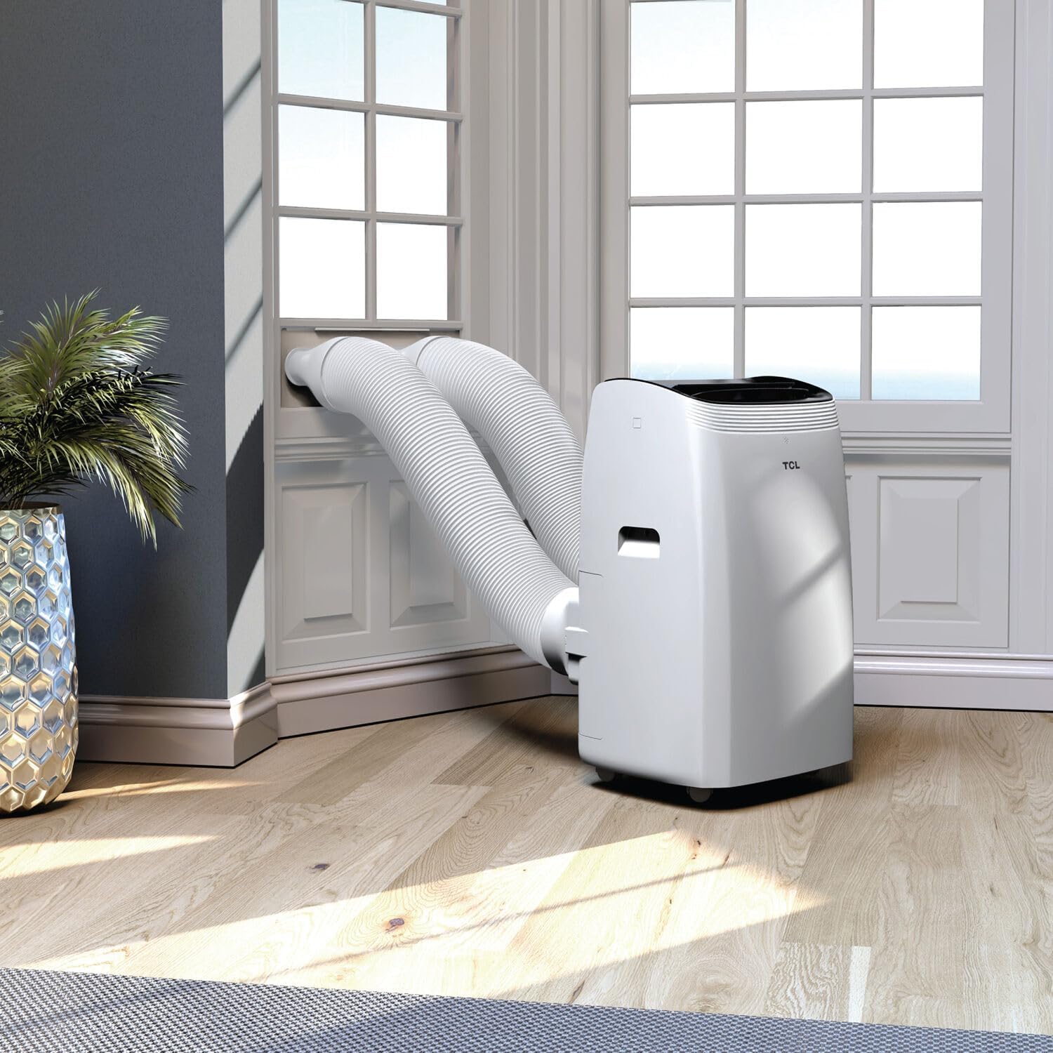 - Rapid-Comfort+: TCL’s portable inverter AC features a dual-hose RapidComfort+ system expertly engineered to seal in cold air and block out heat, ensuring faster, stronger, and more efficient cooling.