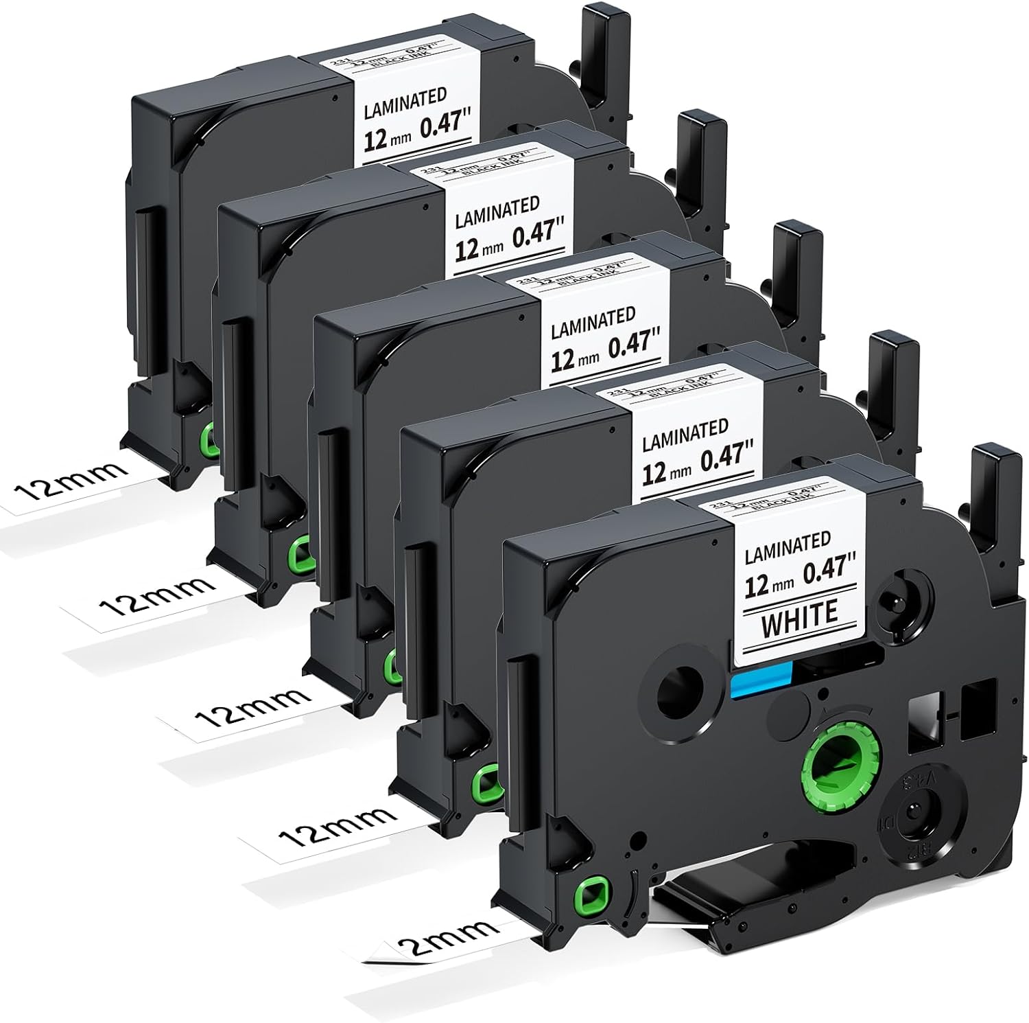 - 【5-Pack Value Set】TZe-231 12mm 0.47 Black Ink on White replacement for p touch label maker tape refills Includes 5 pk 0.47" (12mm) wide × 26.2' (8m) long rolls — enough for 131 ft of total labeling.