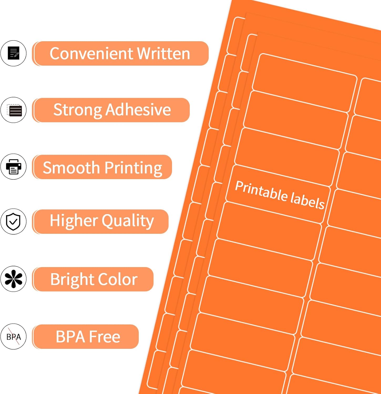 8-1/2 x 11 Neon Color High Light Labels for Laser & Inkjet Printer, Strong Adhesive (Orange, 1" x 2-5/8" - 30 Per Page | 600 Labels)