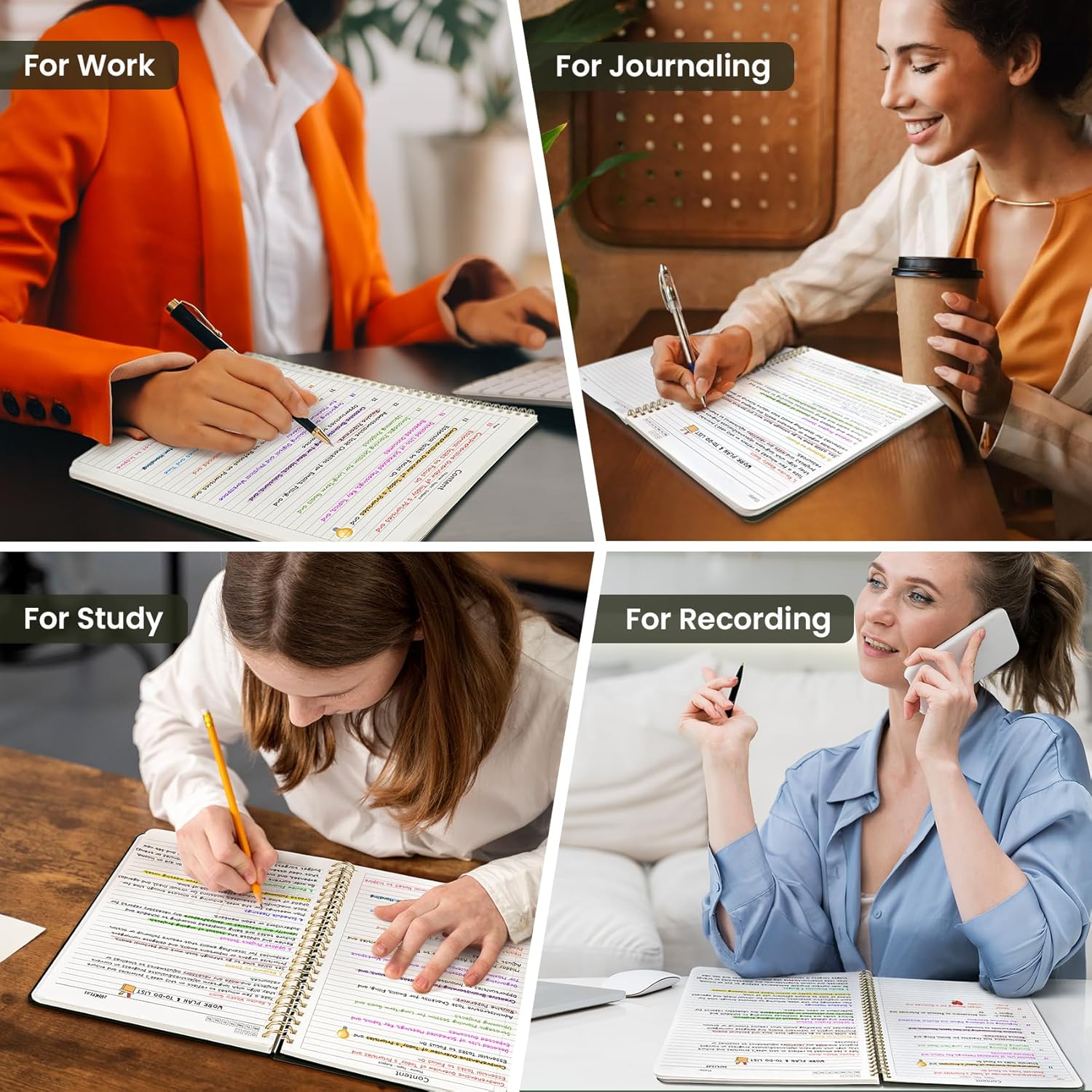 - Large A4 Spiral Notebook: Measuring 8.5" x 11" with standard 7mm college-ruled lines, this large A4 notebook offers ample space for detailed note-taking, journaling, and task management. Its spacious pages are perfect for capturing ideas, organizing thoughts, and managing projects—whether at work, school, or in your home office.