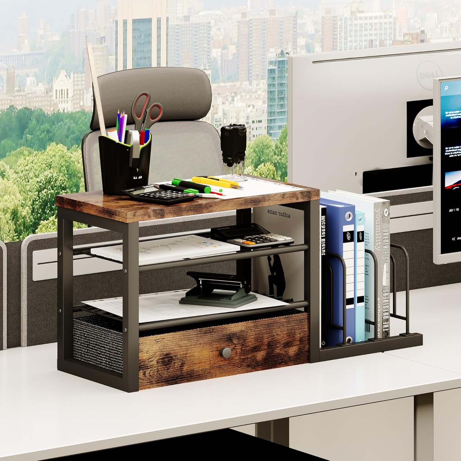 - ā ALL-IN-ONE DESK ORGANIZATION ā Features compartments for books, notebooks & supplies + drawer (fits pens, clips, tools) & vertical file holder for folders/mail.