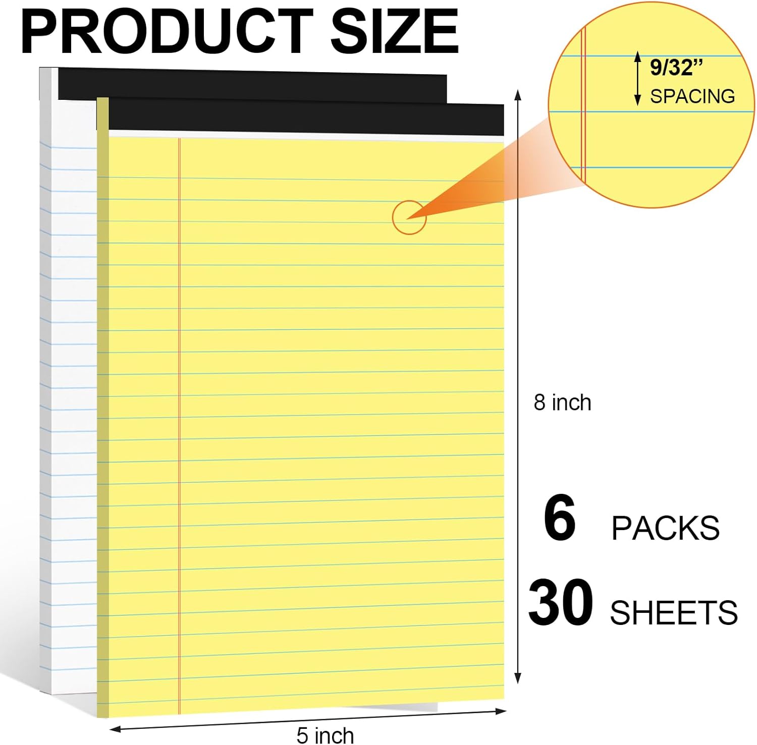 - LEGAL PAD SET: These small legal pads 5x8 have 6 packs, and each notepad has 30 sheets. Small note pads 5x8 leave enough blank area at the top, you can use it as a to-do list, or shopping list. Small note pads 5x8 have double red vertical lines on the left side, the categories and contents are written in separate areas when you are taking notes, which helps you to quickly read notes and create.