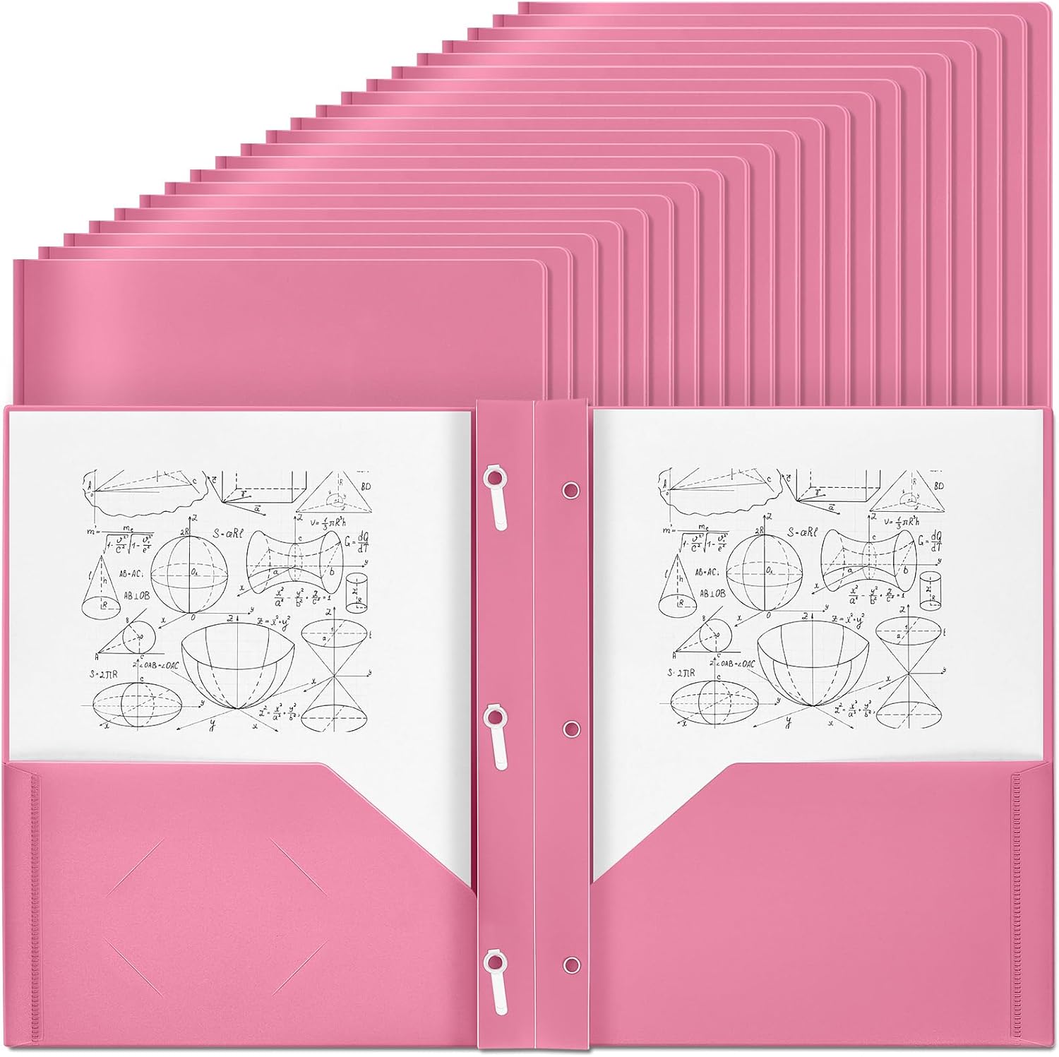 Lincia 100 Pcs Plastic Folders with Pockets and Prong Folders with Prongs 2 Pockets for Office, School for Students, Teachers, Office Workers(Pink)