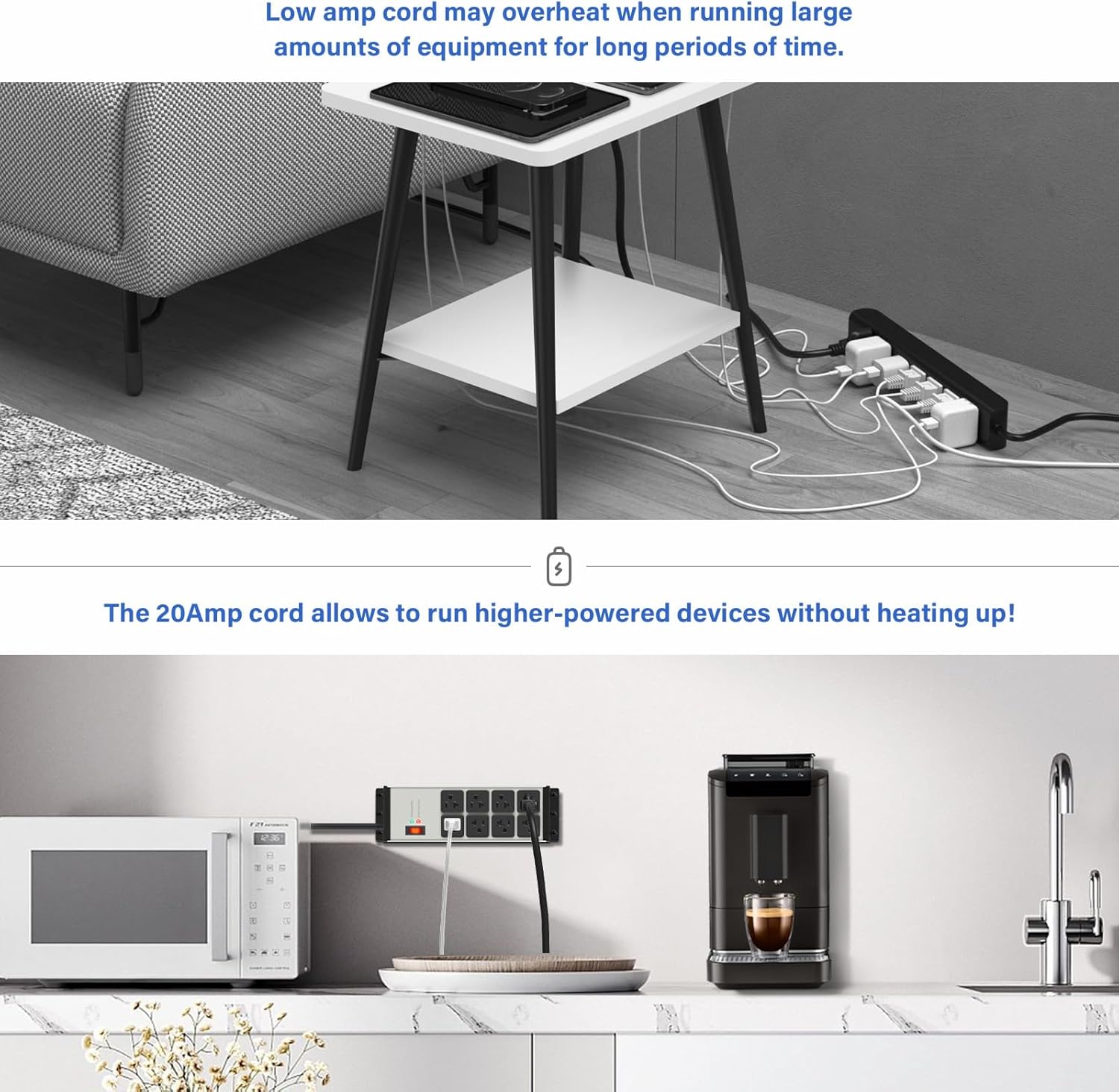 - Garage workshop industrial 8 outlets power strip surge protector 4800J enough for larger surges, Surge protector reset and switch On/Off power and 20A Circuit Breaker, Overload protection.