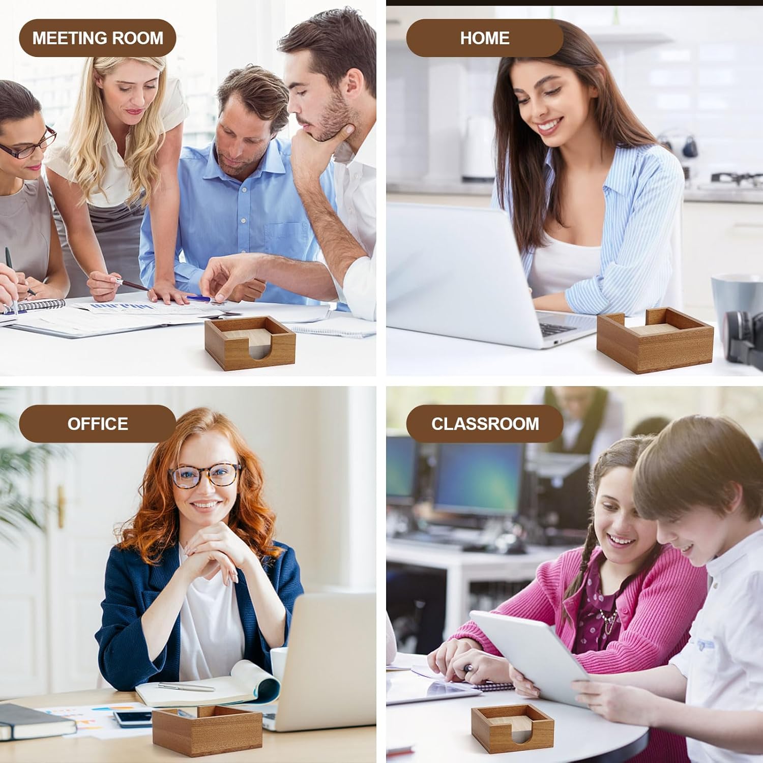 - Compact & Versatile Size: Wood note pad holder size 3.9x3.9x1.8in, can hold over 300 sheets, stackable for keeping several note colors at hand. space-saving dimensions make it ideal for organizing sticky notes, thumbtacks, washi tape, and stationery on desks, shelves, or countertops.
