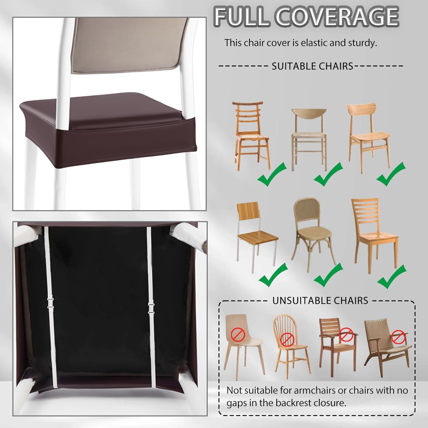 CWK Waterproof PU Leather Dining Chair Covers Set of 2-Stretchable Chair Seat Slipcovers, Removable & Washable Protector for Dining Room,Home,Office,Wedding,Rear Covers (PU-Coffee)