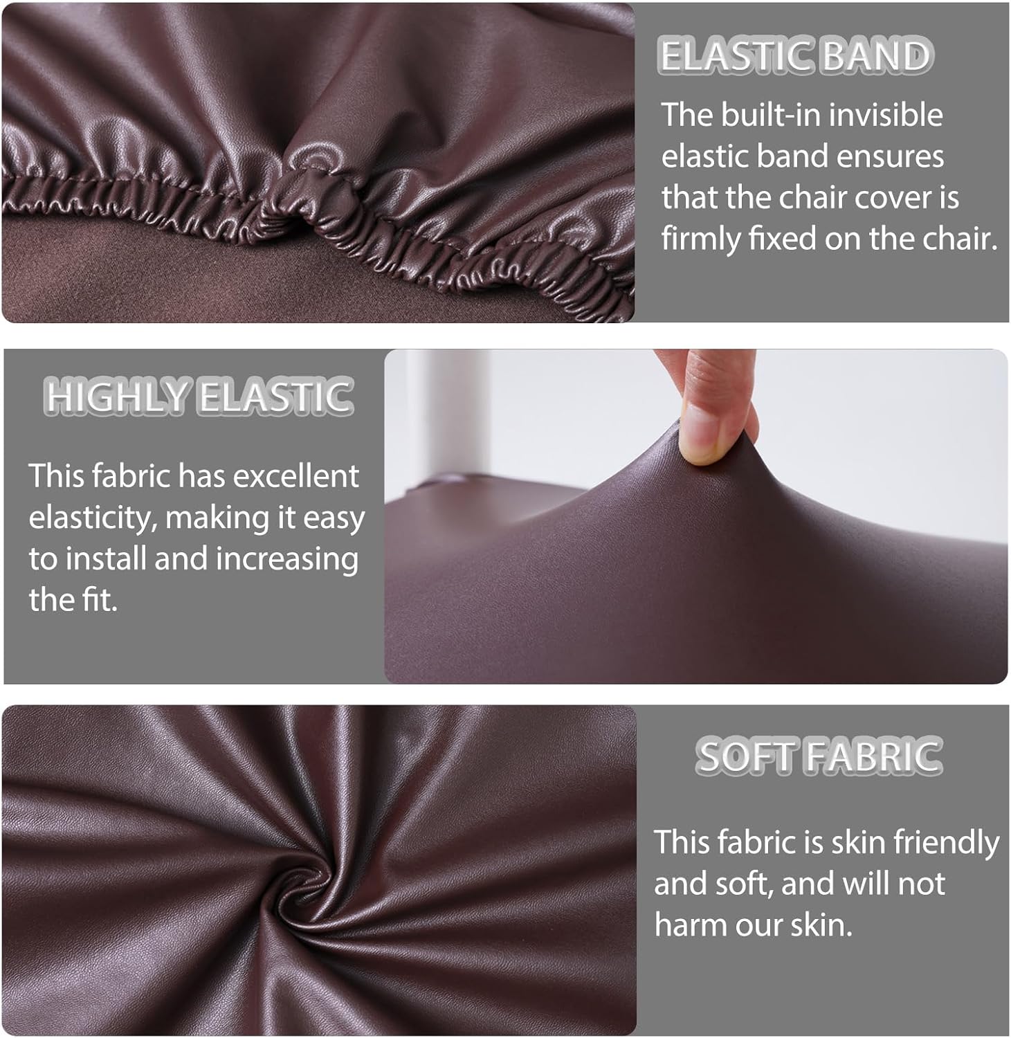 CWK Waterproof PU Leather Dining Chair Covers Set of 4-Stretchable Chair Seat Slipcovers, Removable & Washable Protector for Dining Room,Home,Office,Wedding,Rear Covers (PU-Coffee)