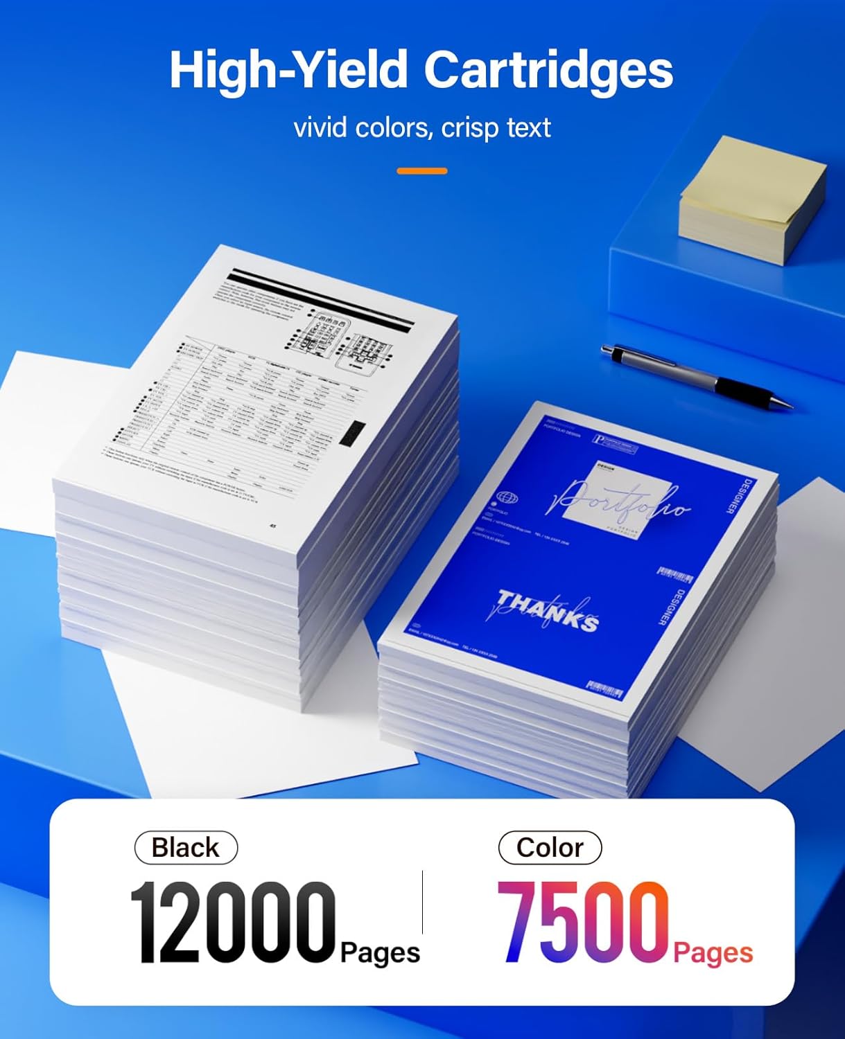 - High Page Yield: 12,000 pages for Black and 7,500 pages for Color toner cartridge (Letter/A4, at 5% coverage)