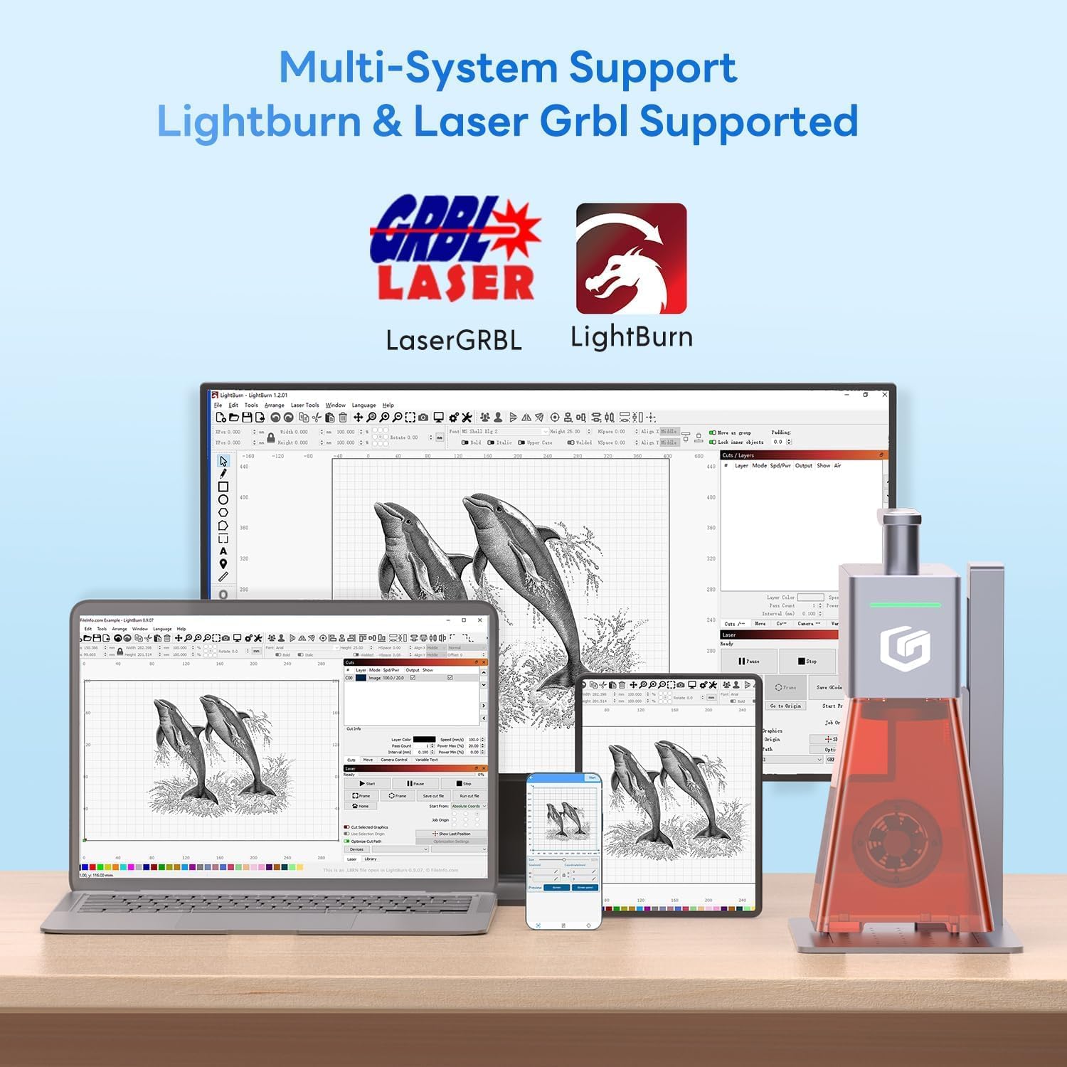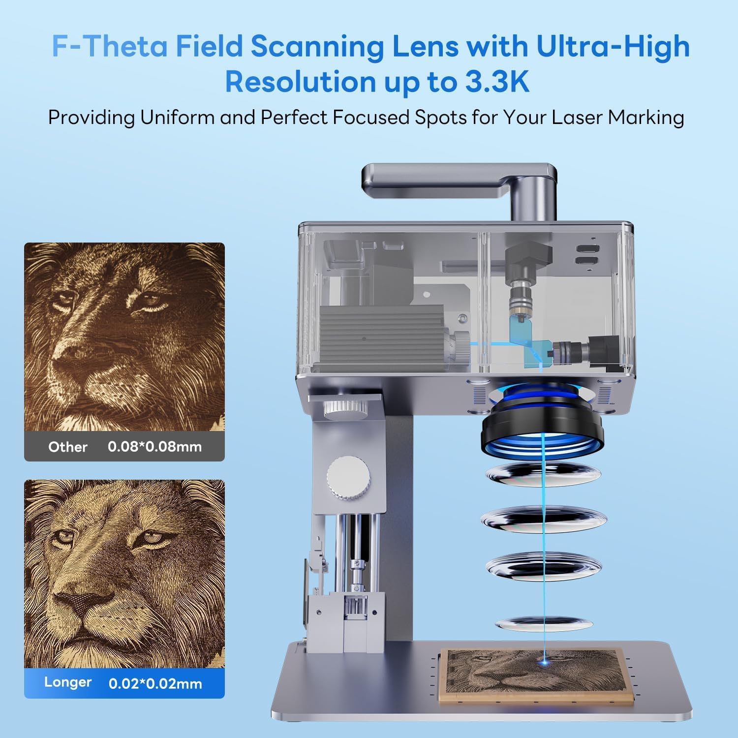 - 【Higher Accuracy and Speed】 The Nano Pro is equipped with industrial-grade field mirrors and optical correction, enhancing engraving quality and achieving precision up to 0.01*0.01mm. With the latest high-speed galvanometer technology, it offers a preview speed of up to 32,000mm/s and high-speed engraving capabilities of up to 5000mm/s