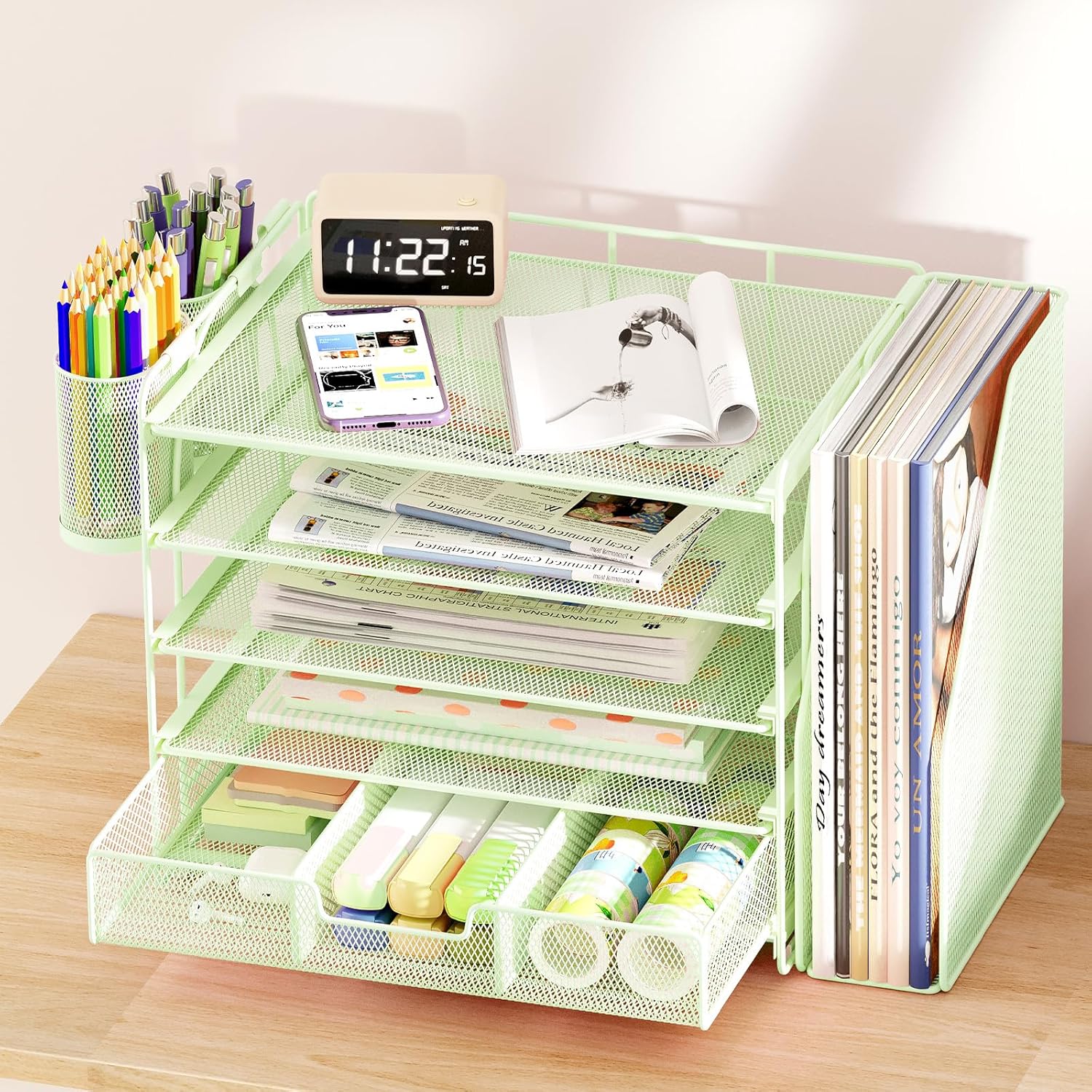 - 【Save Space】5-Tier desk organizer provides ample storage space for your office supplies and desk accessories, making it easy to create a neat and organized desktop, increase efficiency and comfort, and enjoy a tidy and organized office experience.