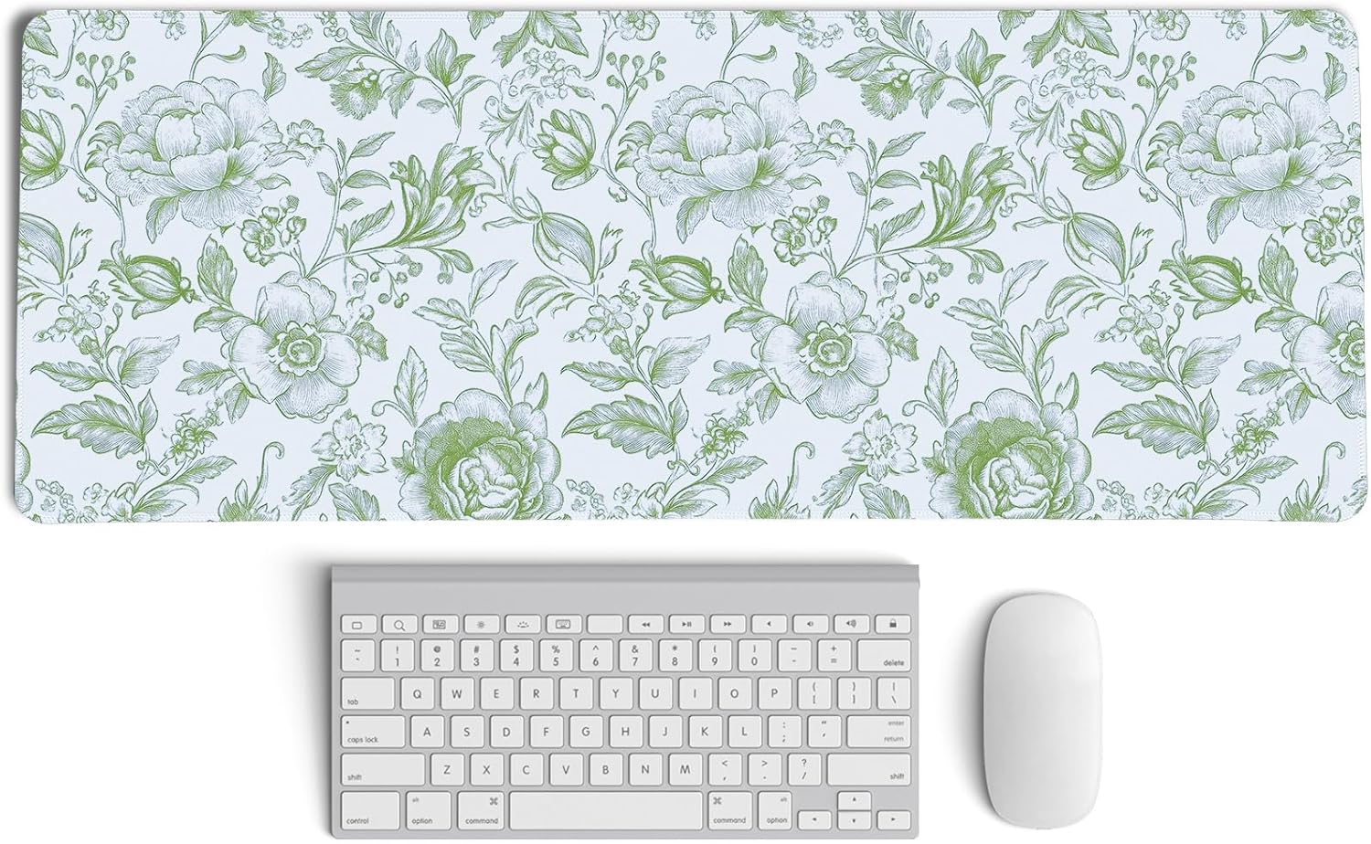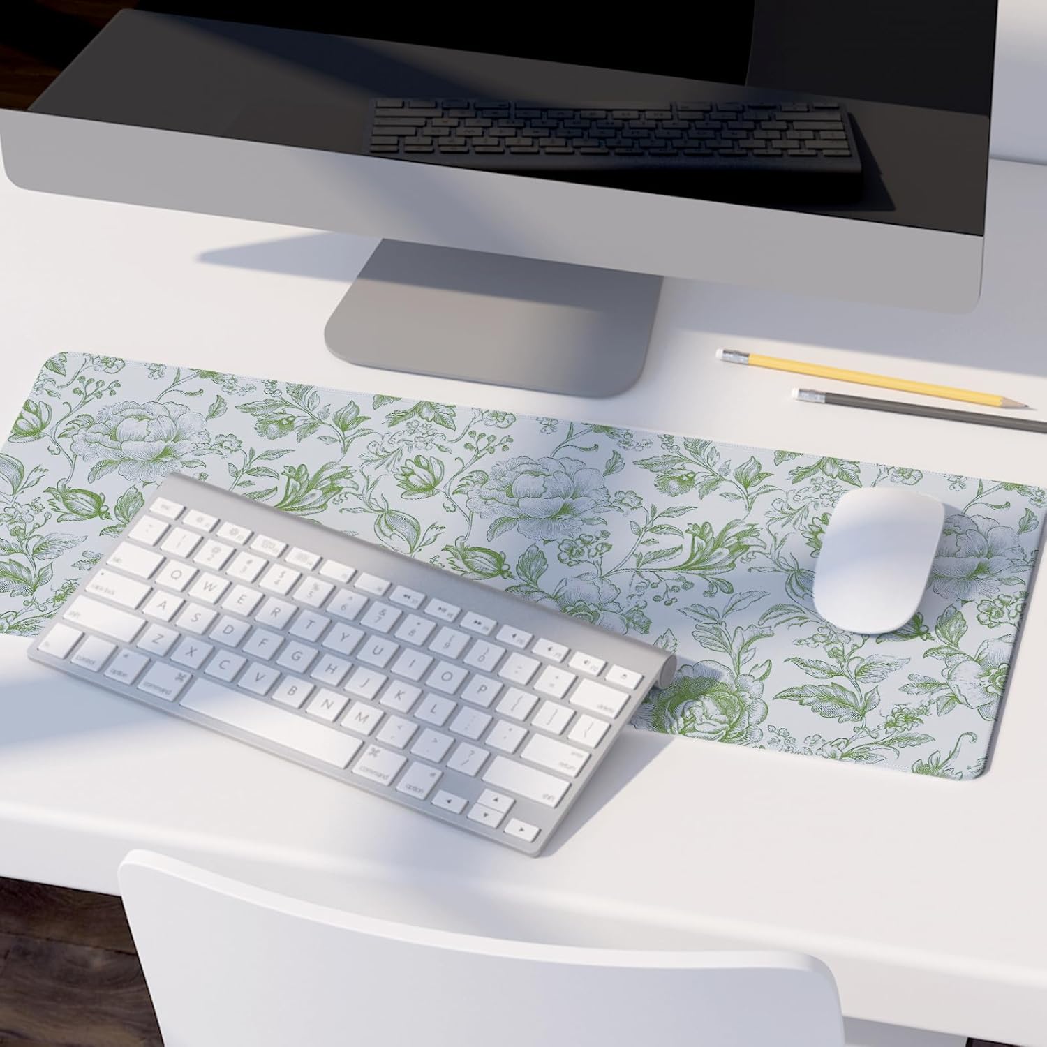 Sage Green Chinoiserie Mouse Pad,Sage Green Floral Desk Mat,XL Large Greens Floral Preppy Trendy Mouse Pad,Girly Gaming Mousepad,Girly Laptop Desk Mat for Dorm Home Office,31.5x11.8 Inch